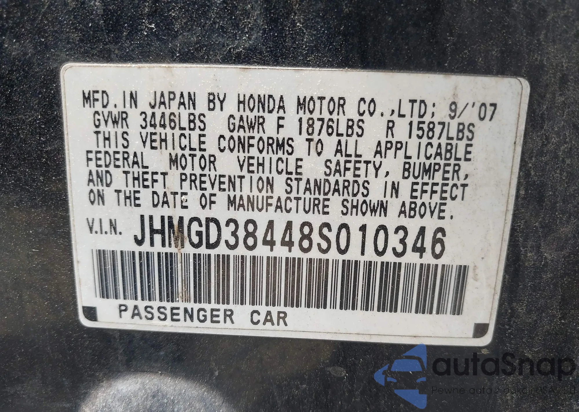 VIN: JHMGD38448S010346