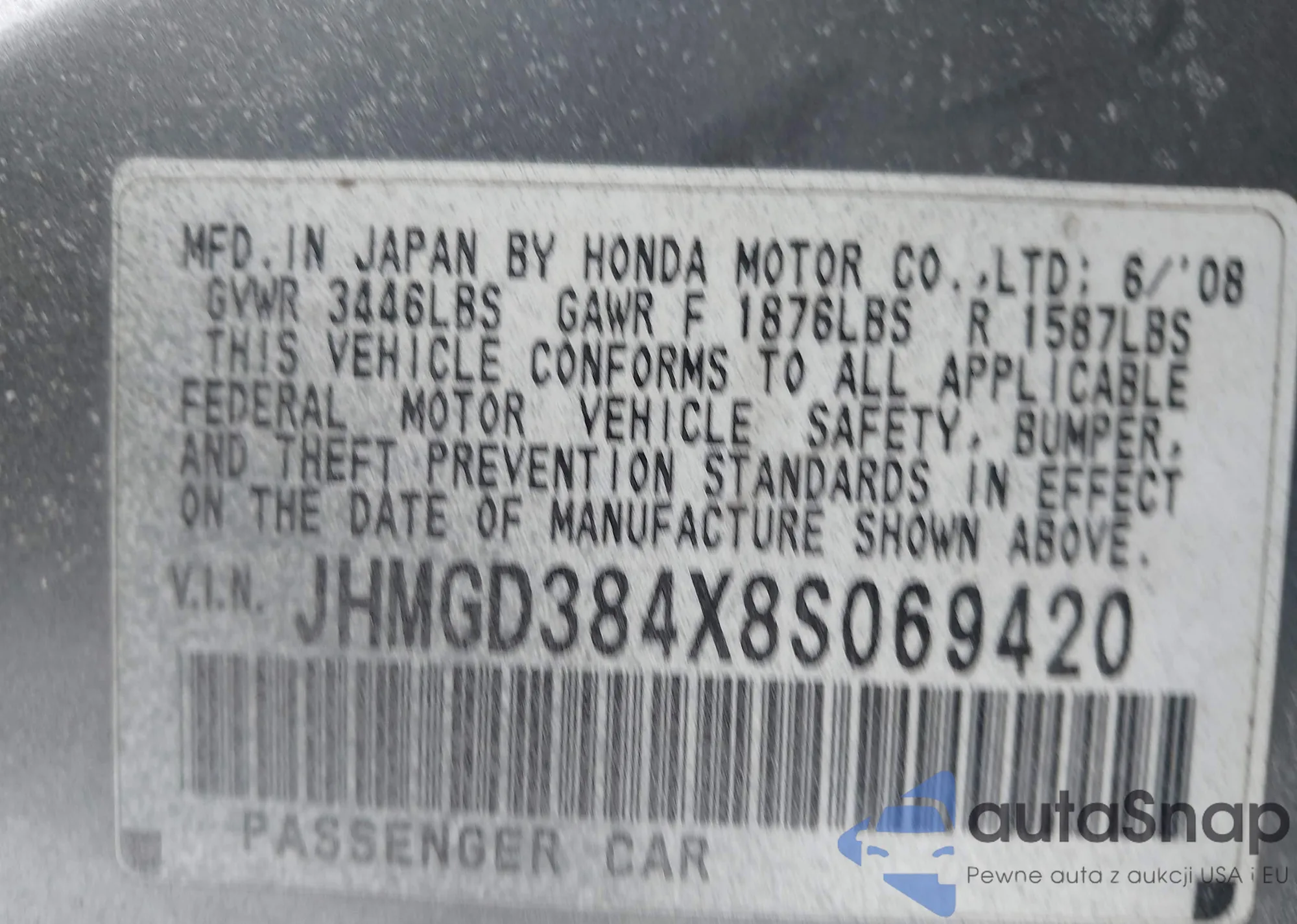 VIN: JHMGD384X8S069420