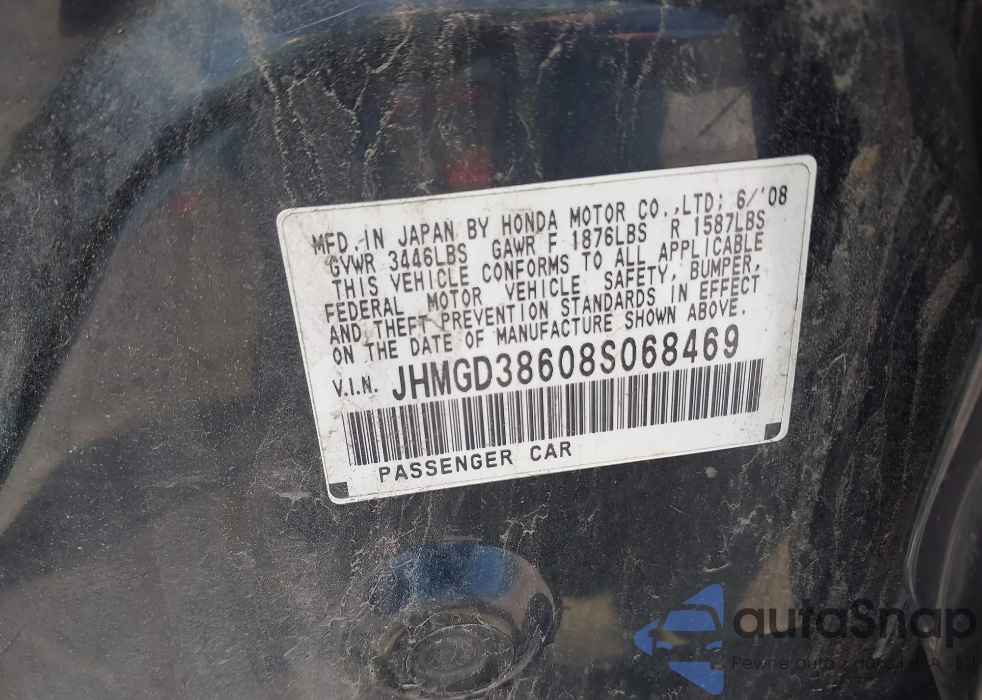VIN: JHMGD38608S068469