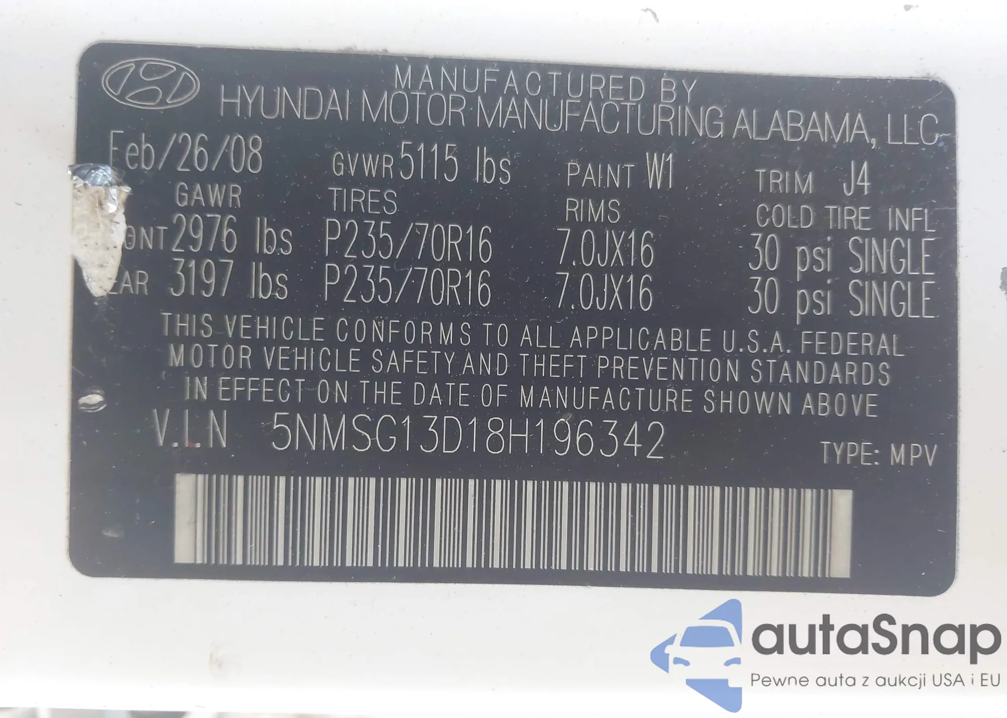VIN: 5NMSG13D18H196342