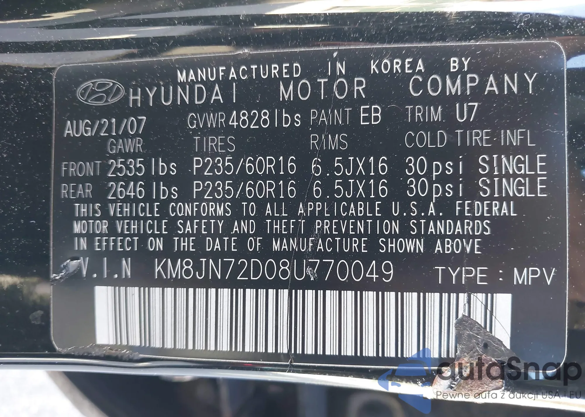 VIN: KM8JN72D08U770049