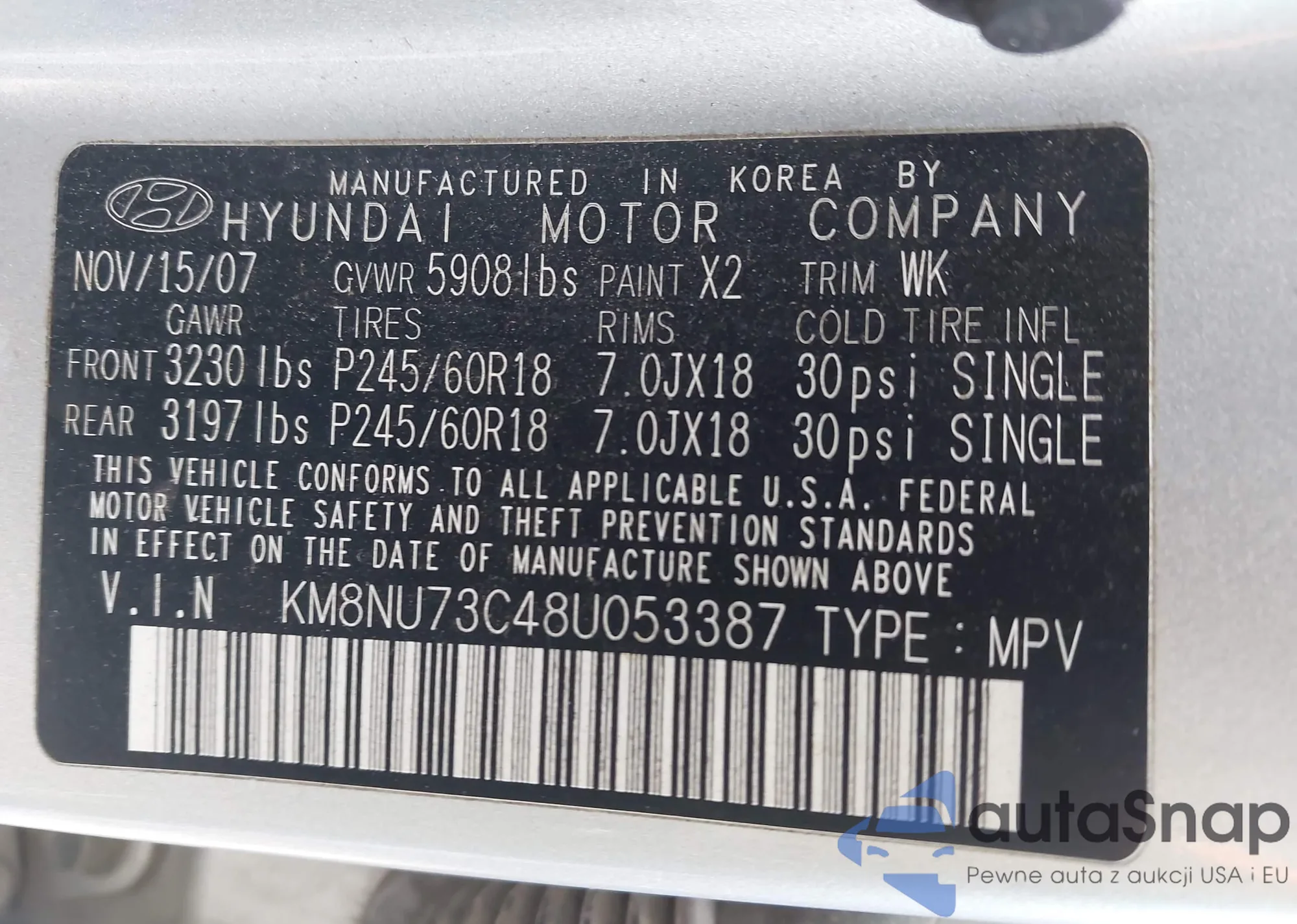 VIN: KM8NU73C48U053387