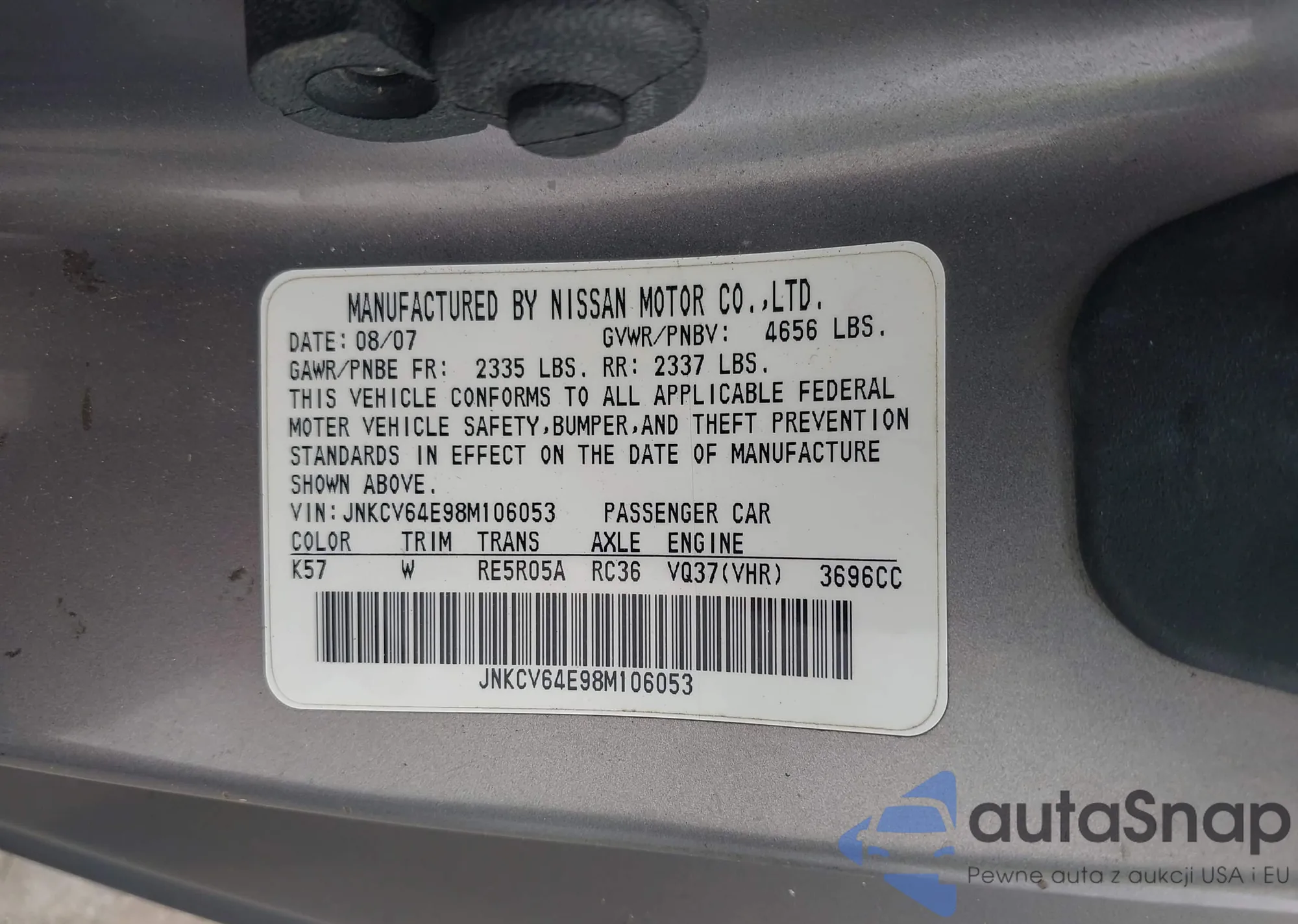 Marka: 2008 Infiniti G37 Jou...