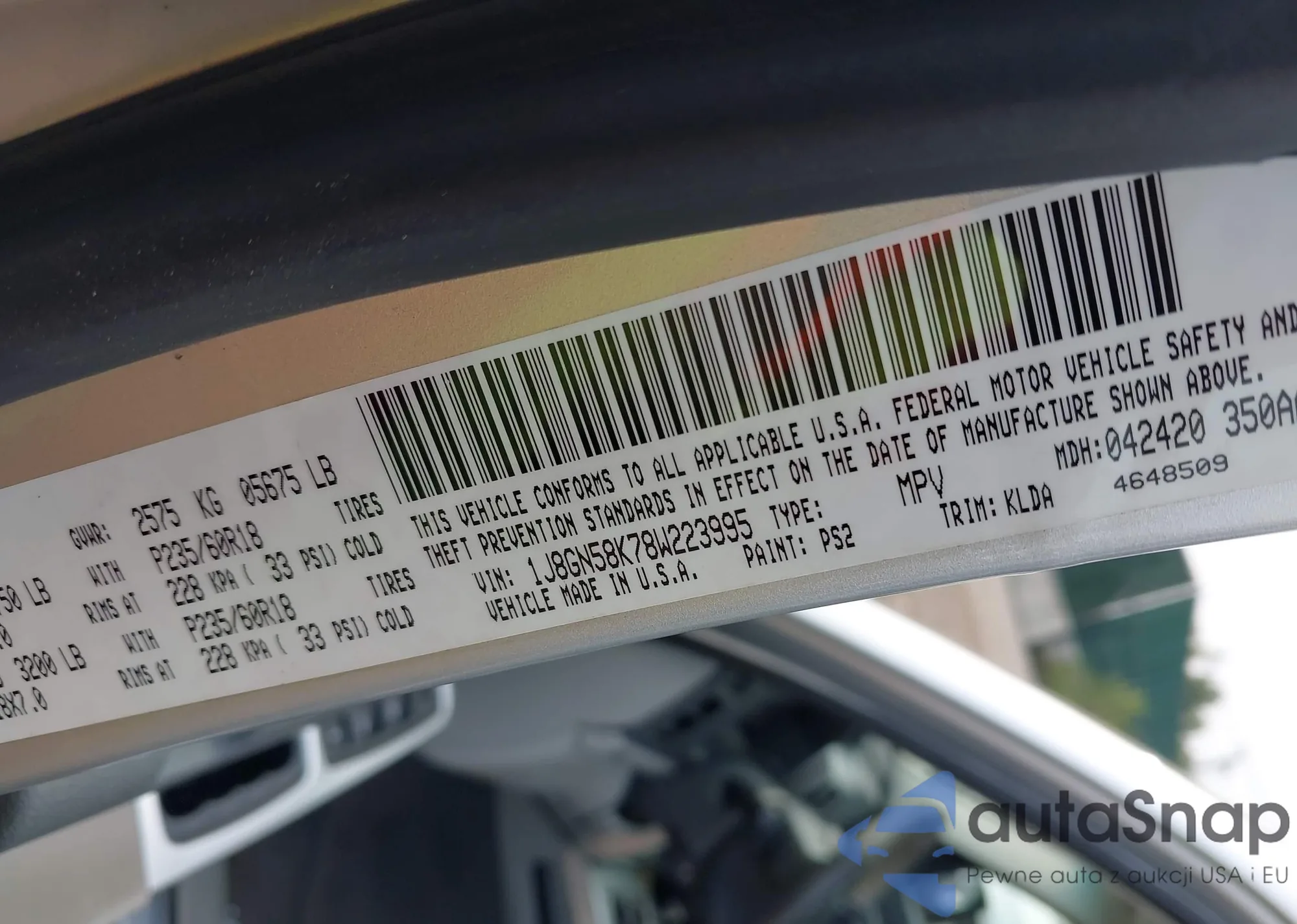 VIN: 1J8GN58K78W223995