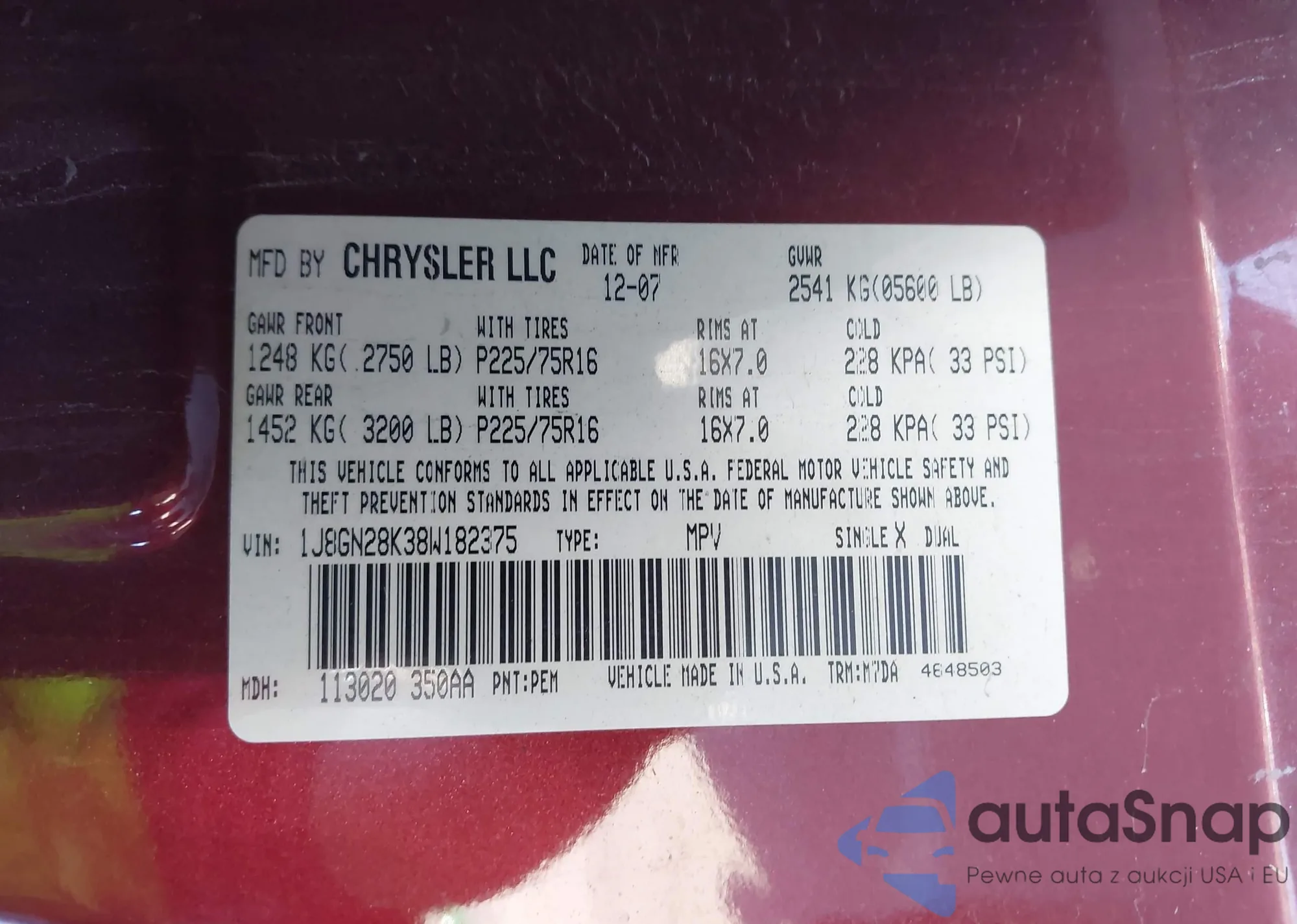 Samochód Jeep Liberty (North America) 2008 (VIN 1J8GN28K38W182375) nie był wcześniej licytowany. Dokumenty są czyste, przebieg odpowiada lub jest niższy niż średnia rynku. Sprzedaje go firma ubezpieczeniowa – polecamy zakup. Dostawa do portu zajmie ok. 6–8 tygodni.