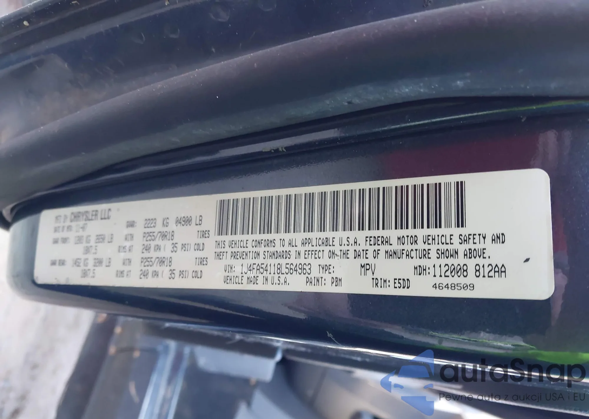 VIN: 1J4FA54118L564963
