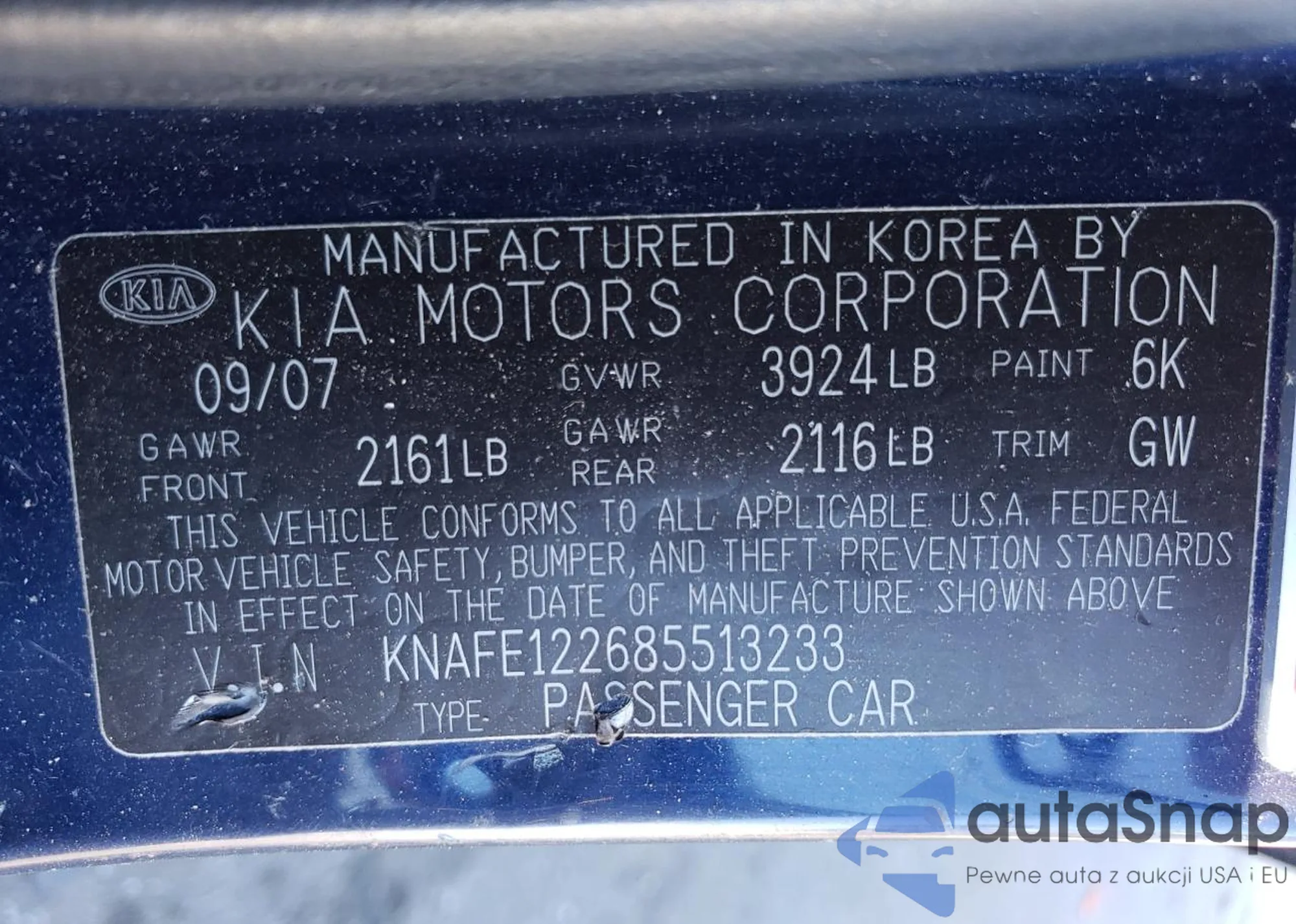VIN: KNAFE122685513233