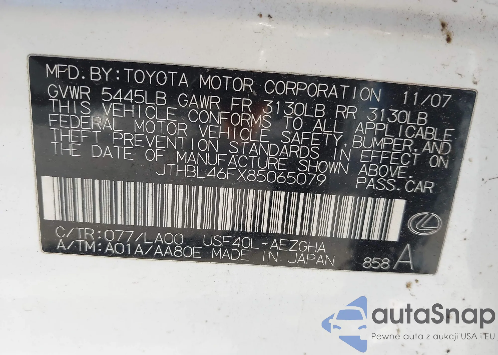 VIN: JTHBL46FX85065079