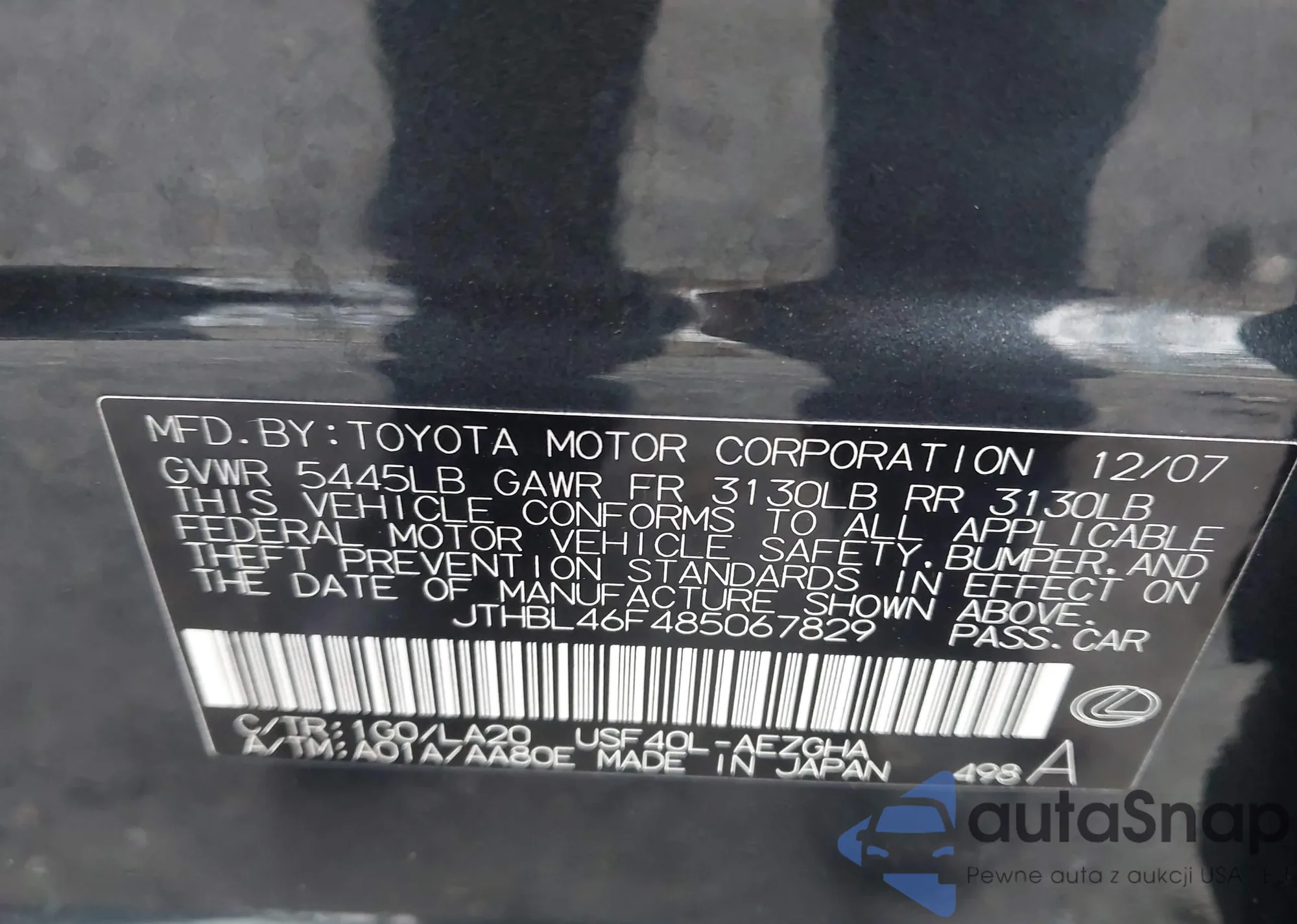 VIN: JTHBL46F485067829