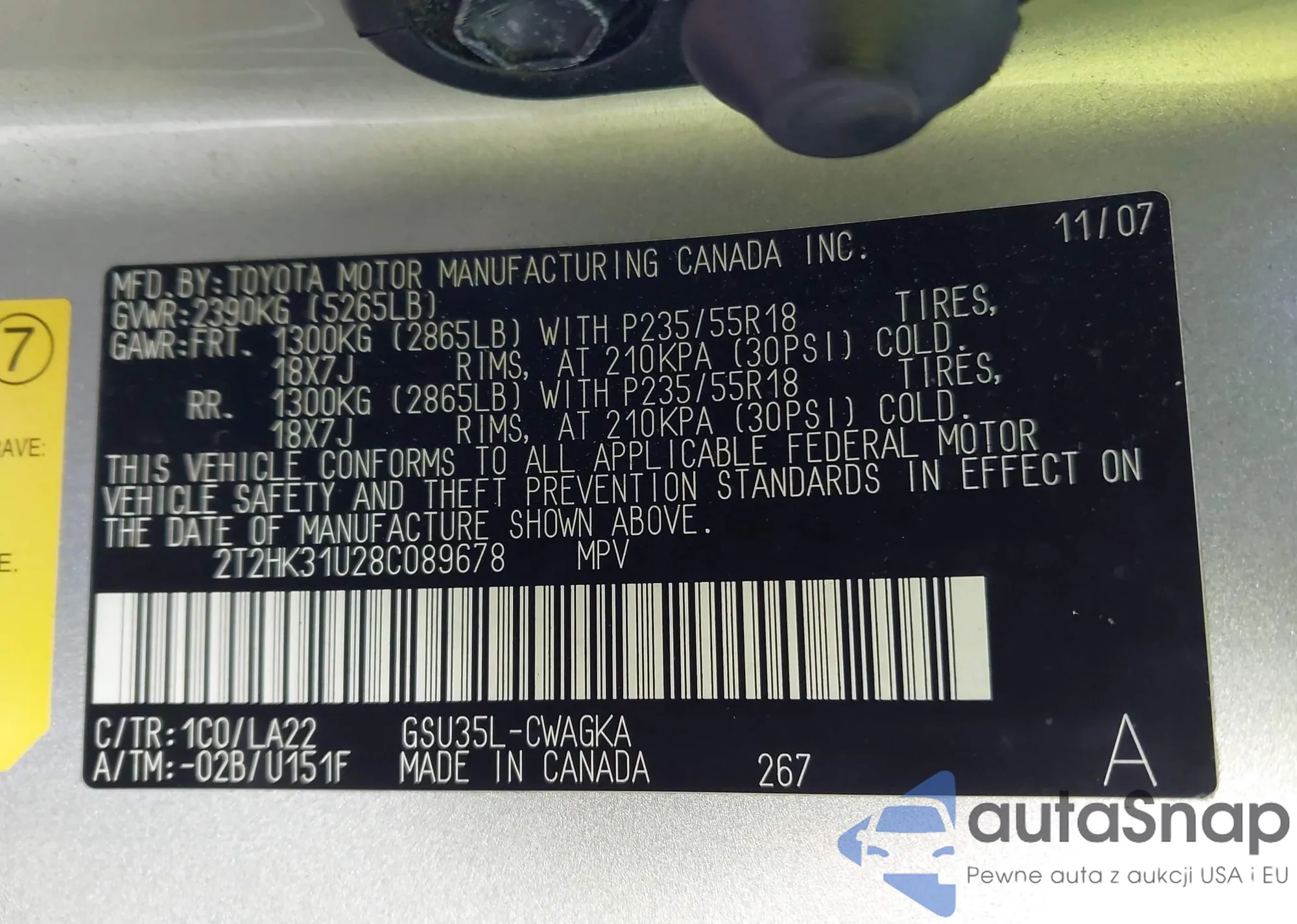 • VIN: 2T2HK31U28C089678