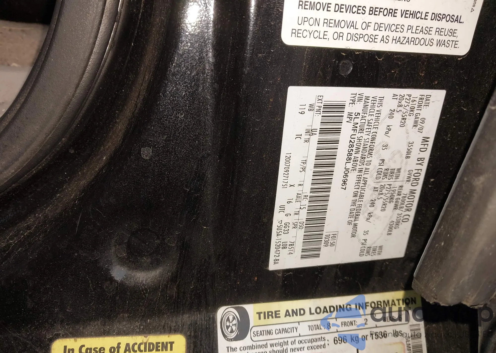 Samochód Lincoln Navigator 2008 (VIN 5LMFU28588LJ06967) nie był wcześniej licytowany. Dokumenty są czyste, przebieg odpowiada lub jest niższy niż średnia rynku. Sprzedaje go firma ubezpieczeniowa – polecamy zakup. Dostawa do portu zajmie ok. 6–8 tygodni.