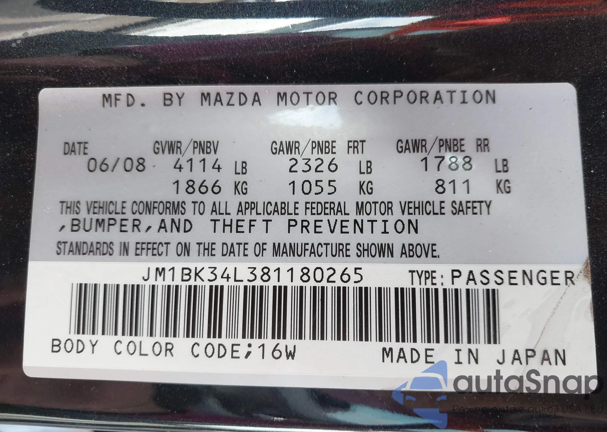 VIN: JM1BK34L381180265
