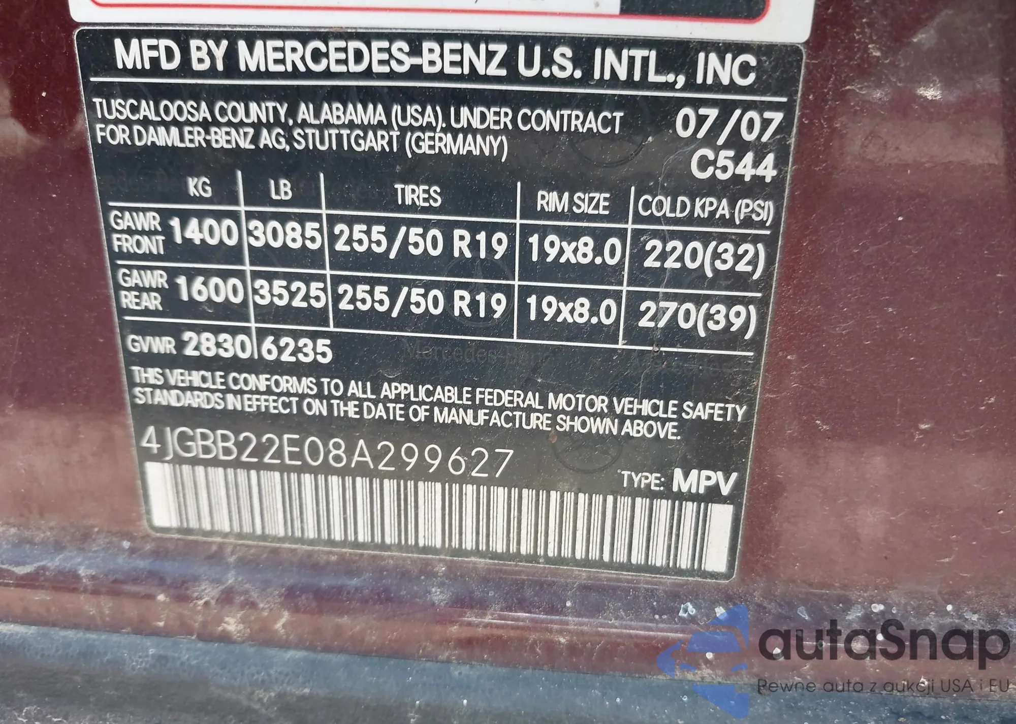 VIN: 4JGBB22E08A299627