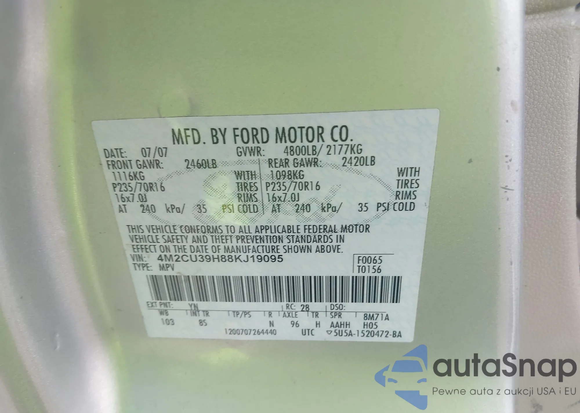 VIN: 4M2CU39H88KJ19095