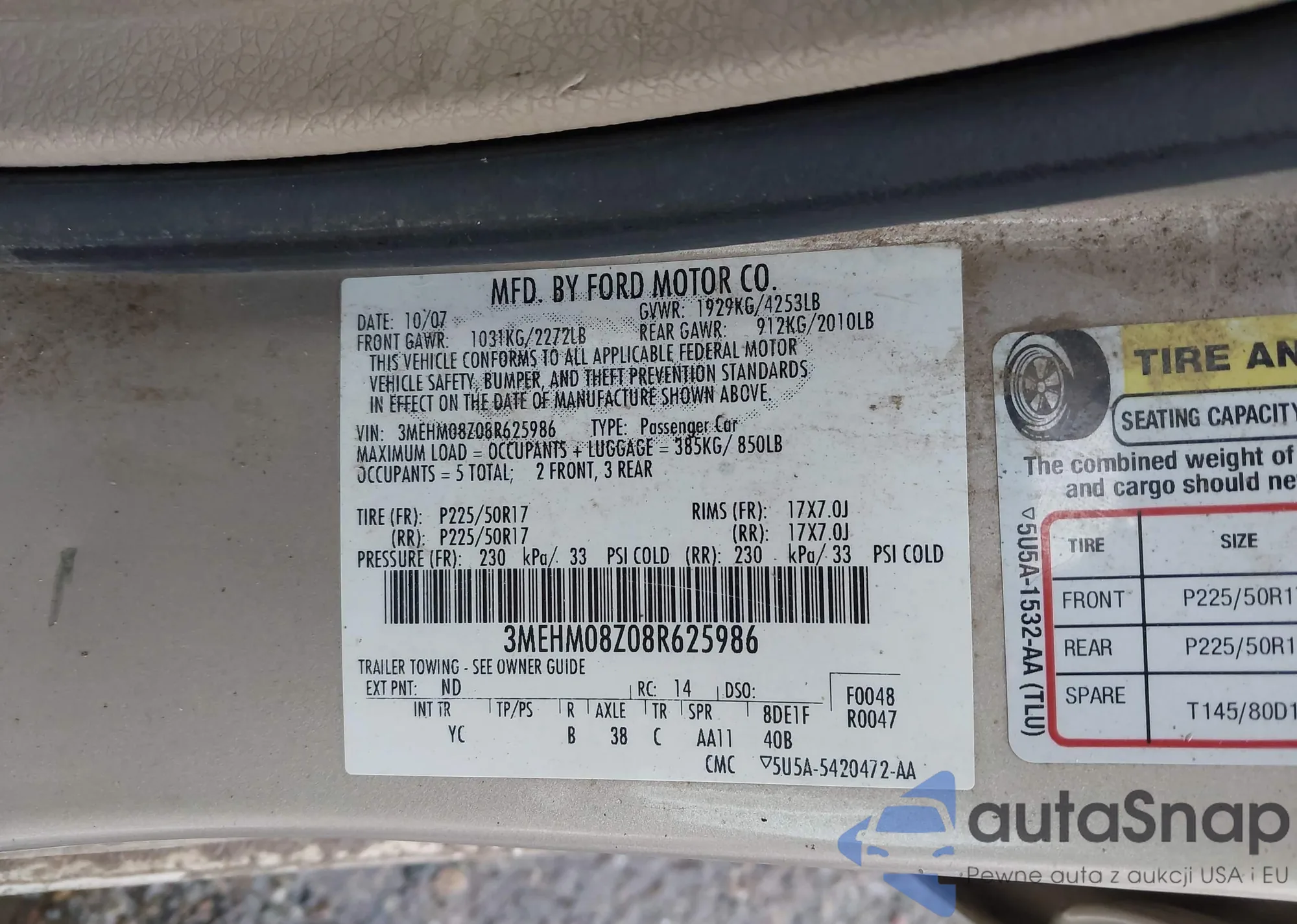 Samochód Mercury Milan 2008 (VIN 3MEHM08Z08R625986) nie był wcześniej licytowany. Dokumenty są czyste, przebieg odpowiada lub jest niższy niż średnia rynku. Sprzedaje go firma ubezpieczeniowa – polecamy zakup. Dostawa do portu zajmie ok. 6–8 tygodni.