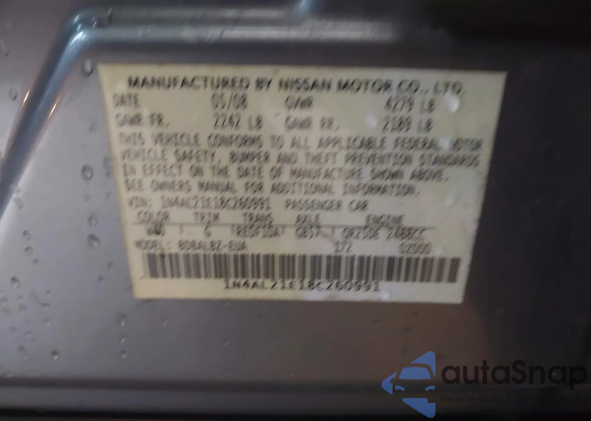 VIN: 1N4AL21E18C260991