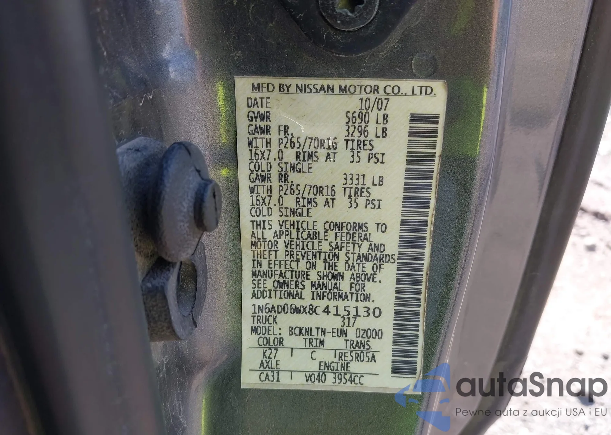 VIN: 1N6AD06WX8C415130