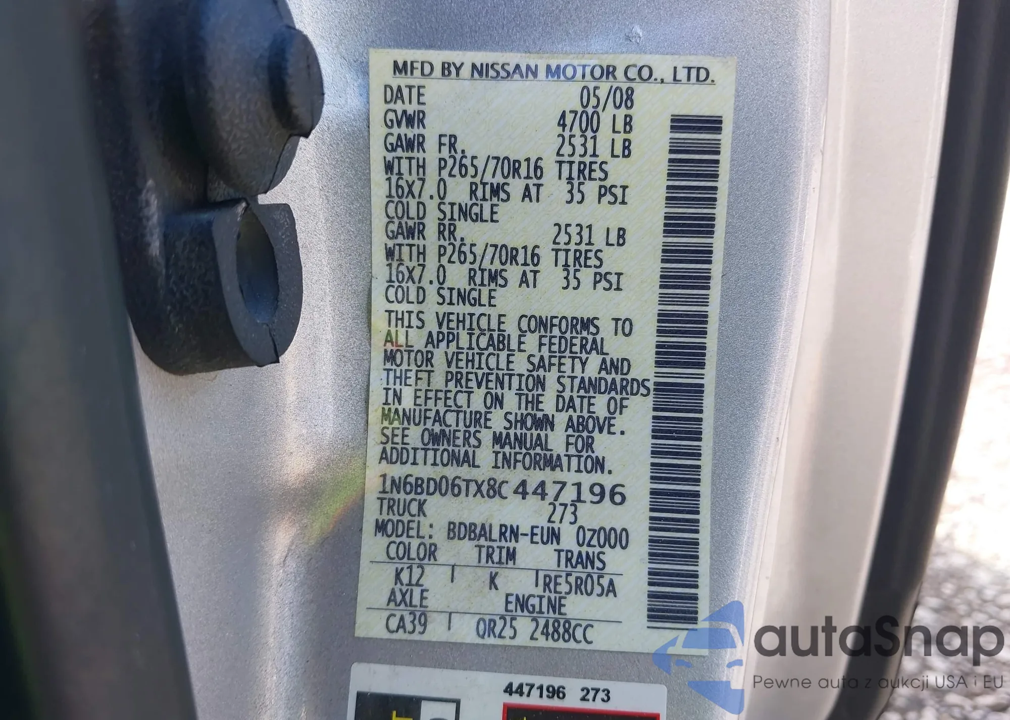 VIN: 1N6BD06TX8C447196
