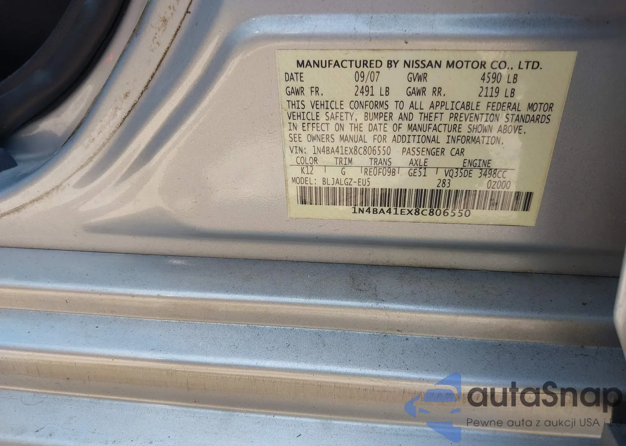 VIN: 1N4BA41EX8C806550