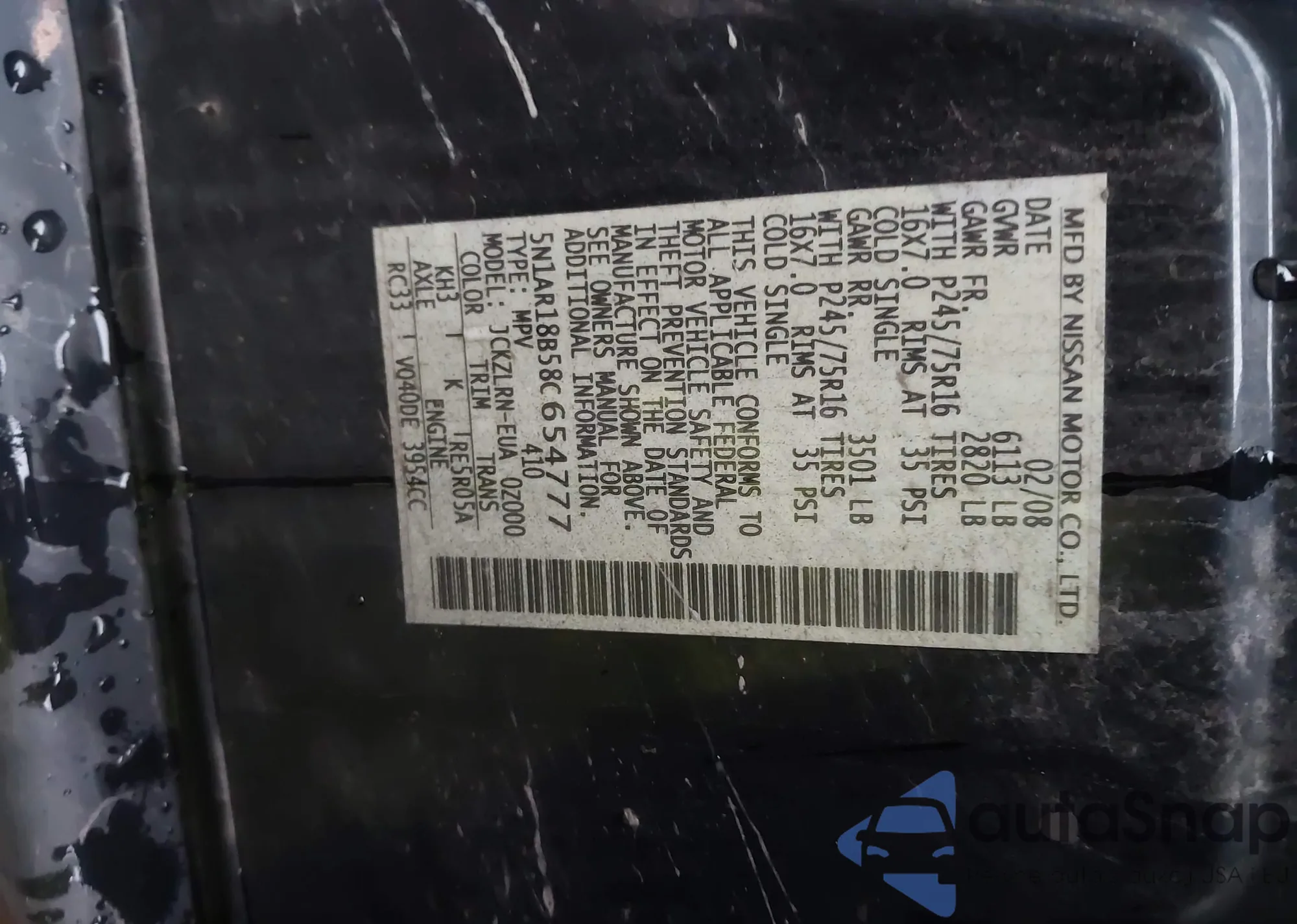 VIN: 5N1AR18B58C654777