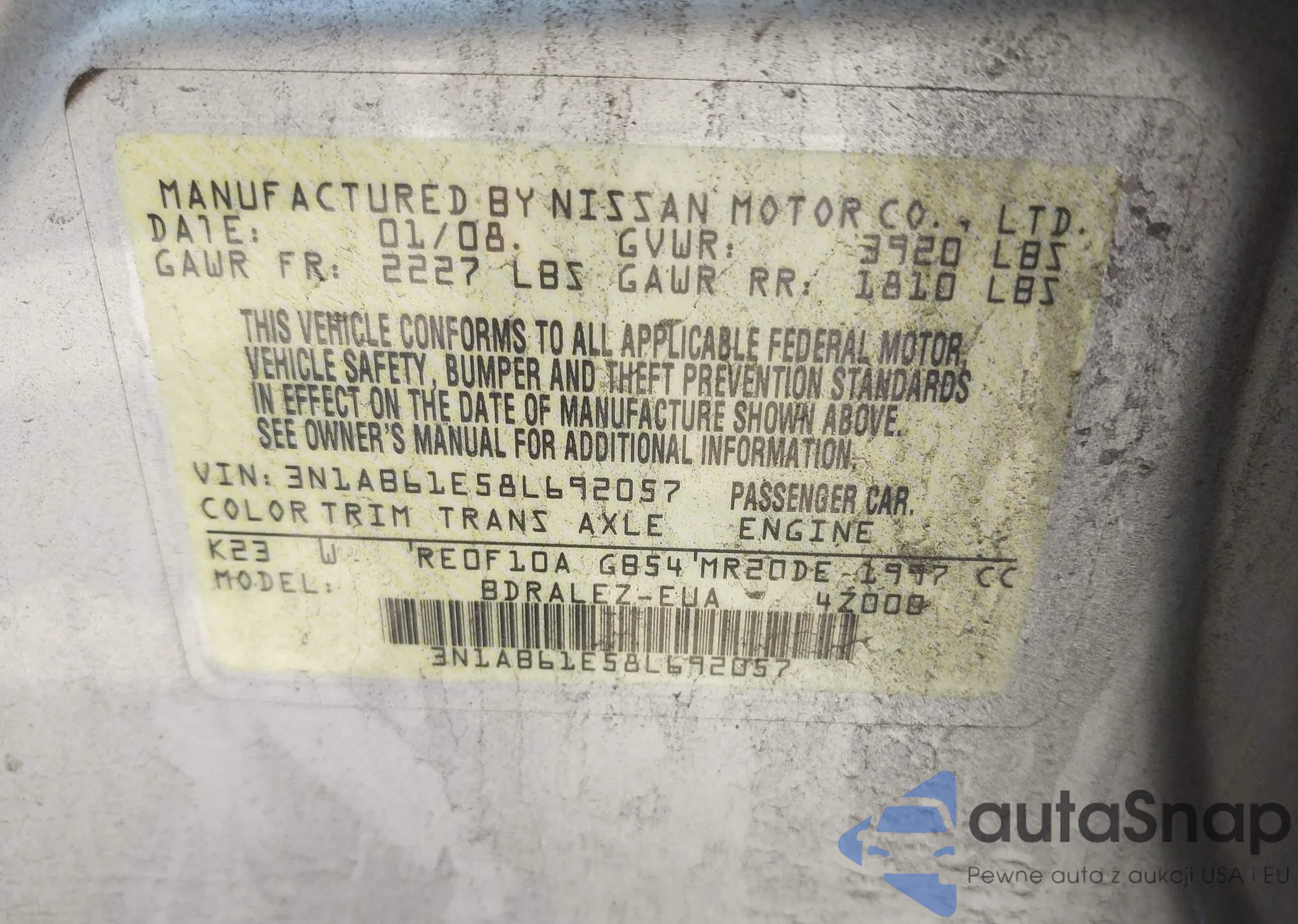 VIN: 3N1AB61E58L692057