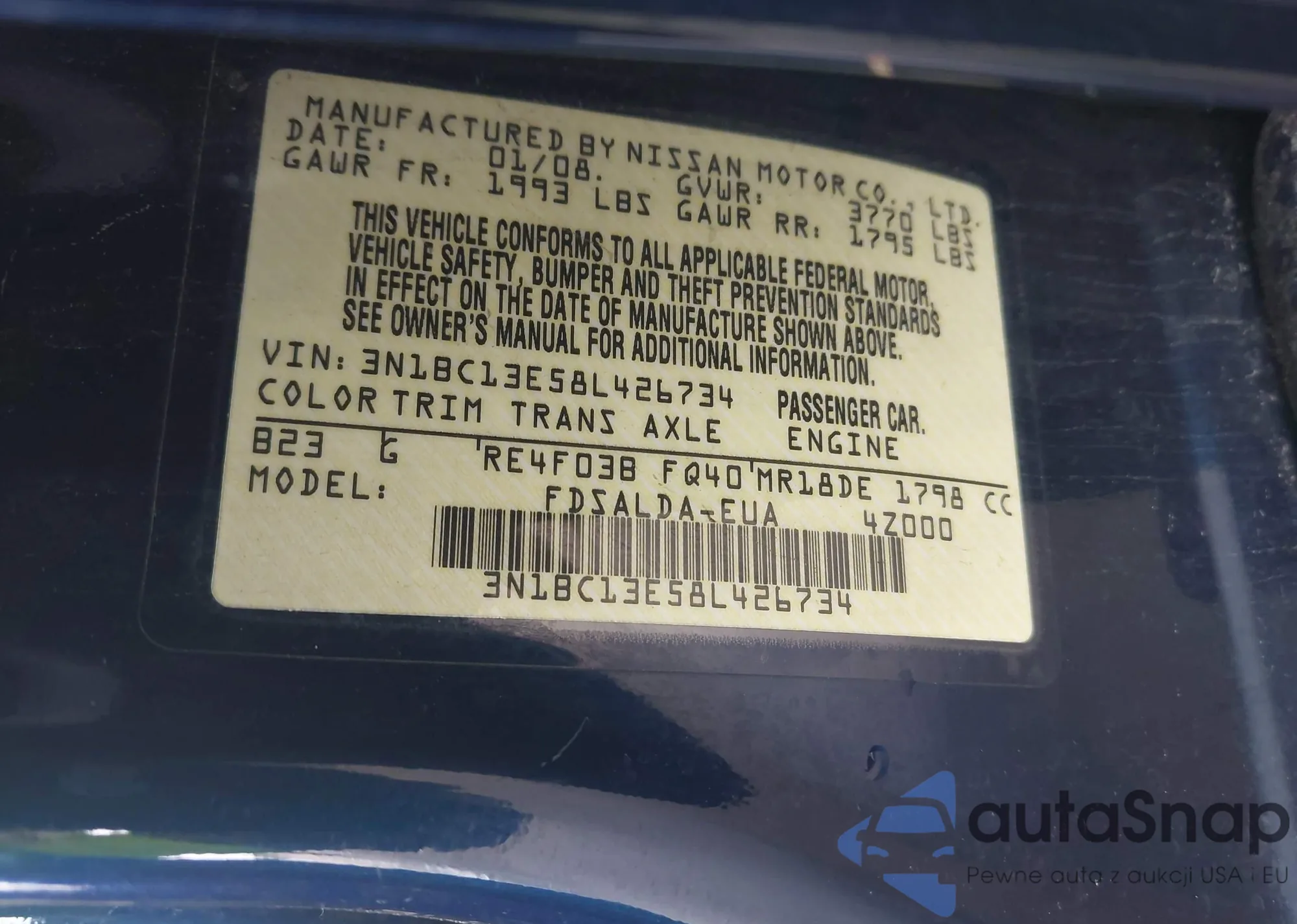 • VIN: 3N1BC13E58L426734