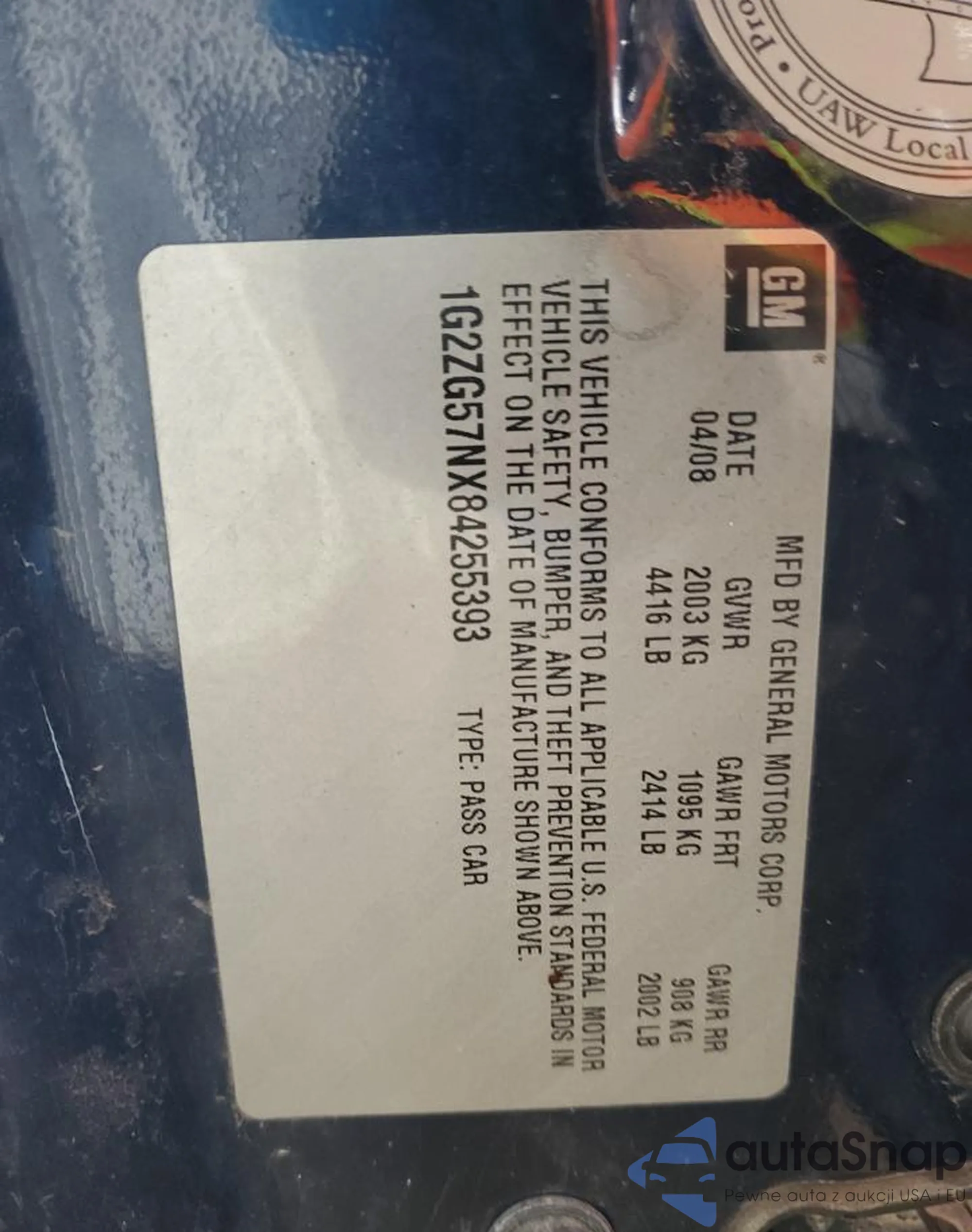 VIN: 1G2ZG57NX84255393
