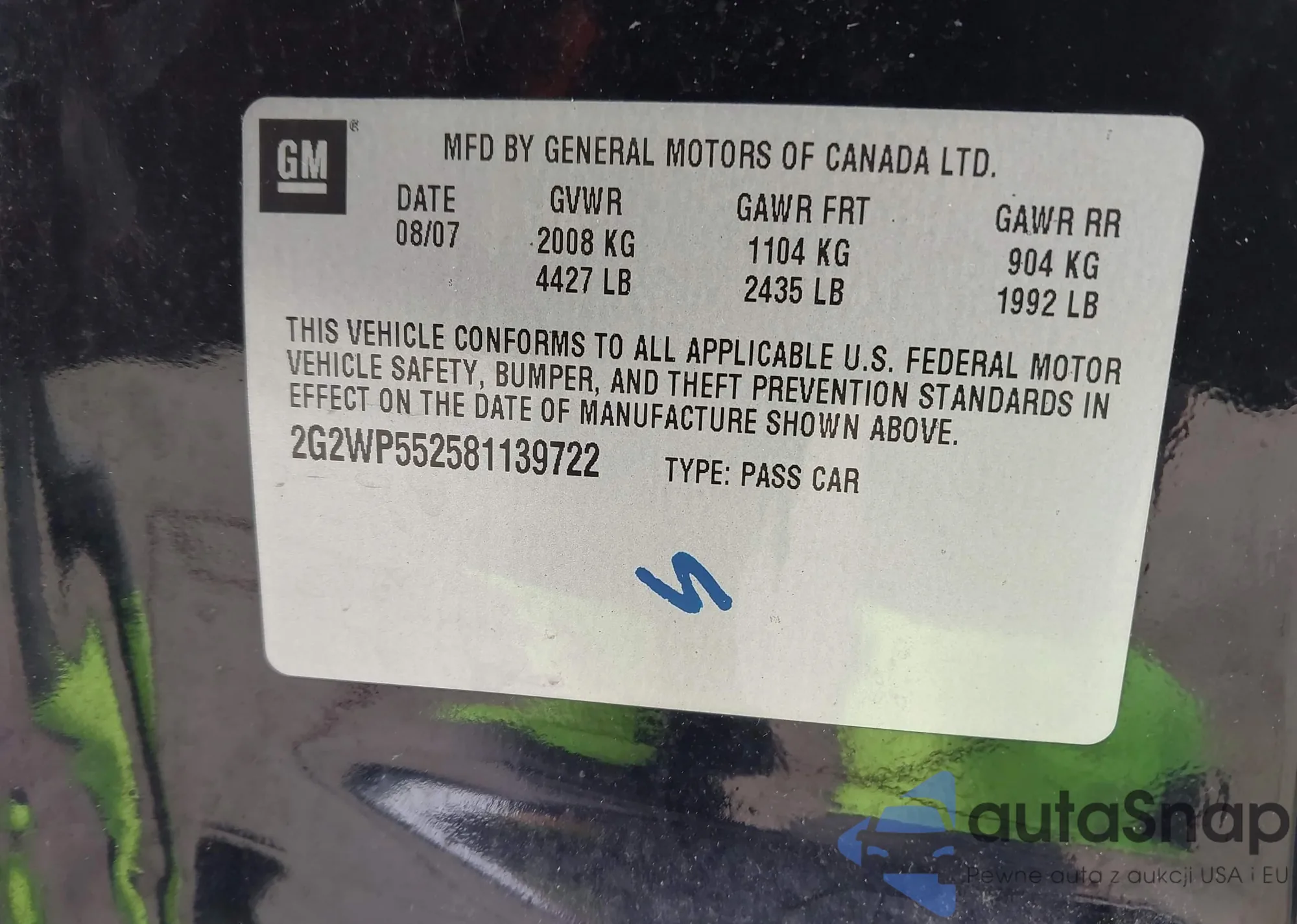 Samochód Pontiac Grand Prix 2008 (VIN 2G2WP552581139722) nie był wcześniej licytowany. Dokumenty są czyste, przebieg odpowiada lub jest niższy niż średnia rynku. Sprzedaje go firma ubezpieczeniowa – polecamy zakup. Dostawa do portu zajmie ok. 6–8 tygodni.