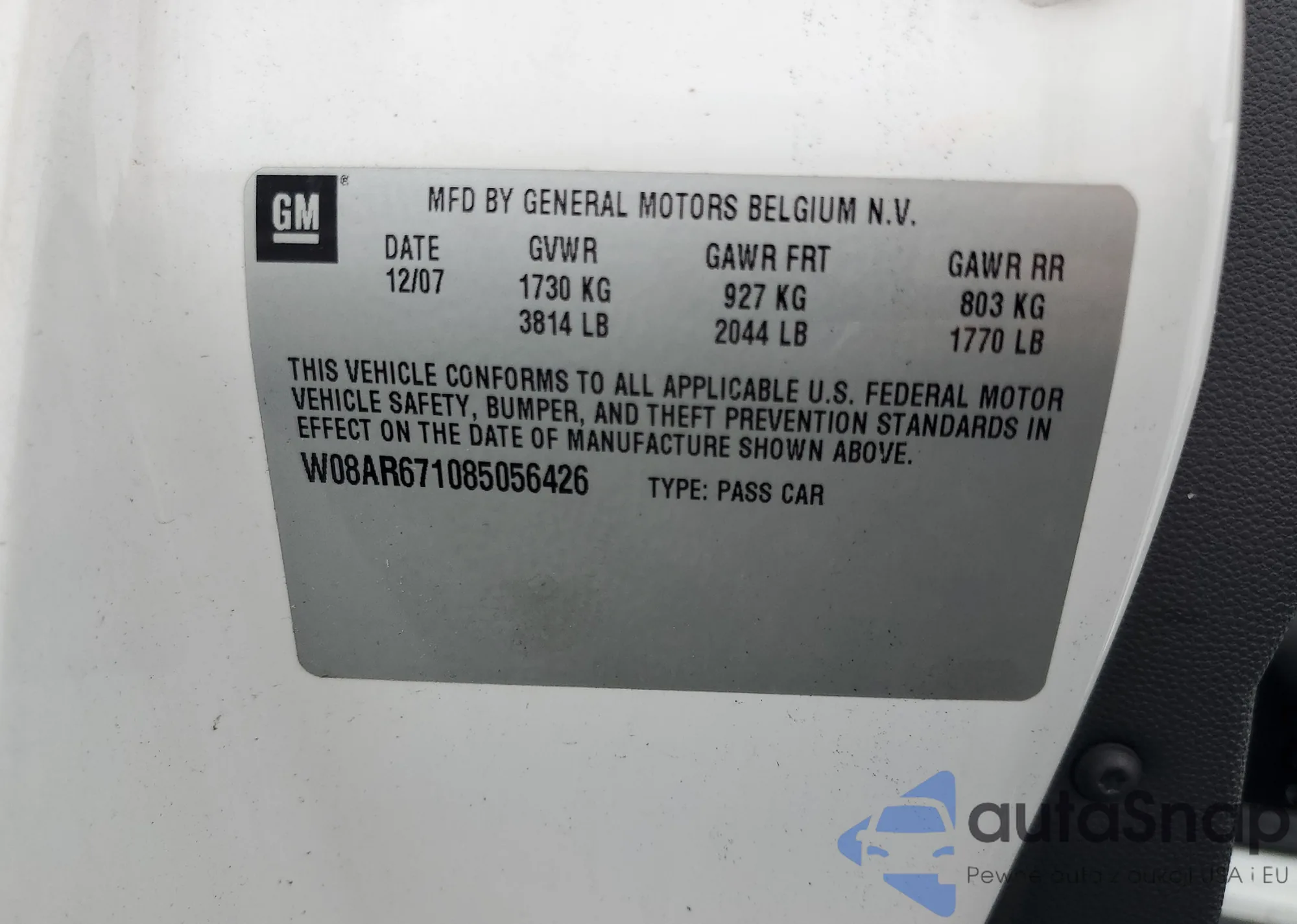 VIN: W08AR671085056426