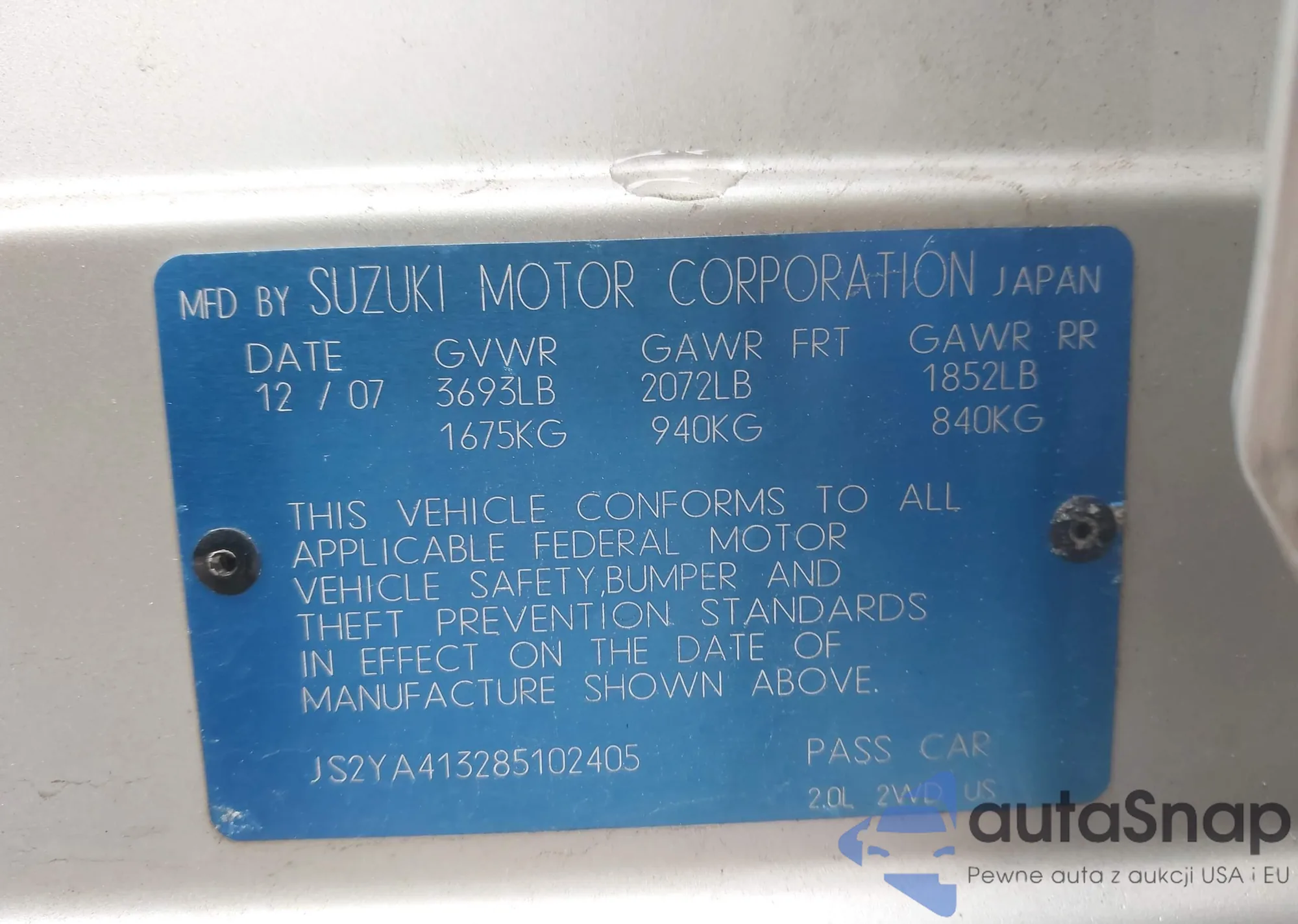 • VIN: JS2YA413285102405