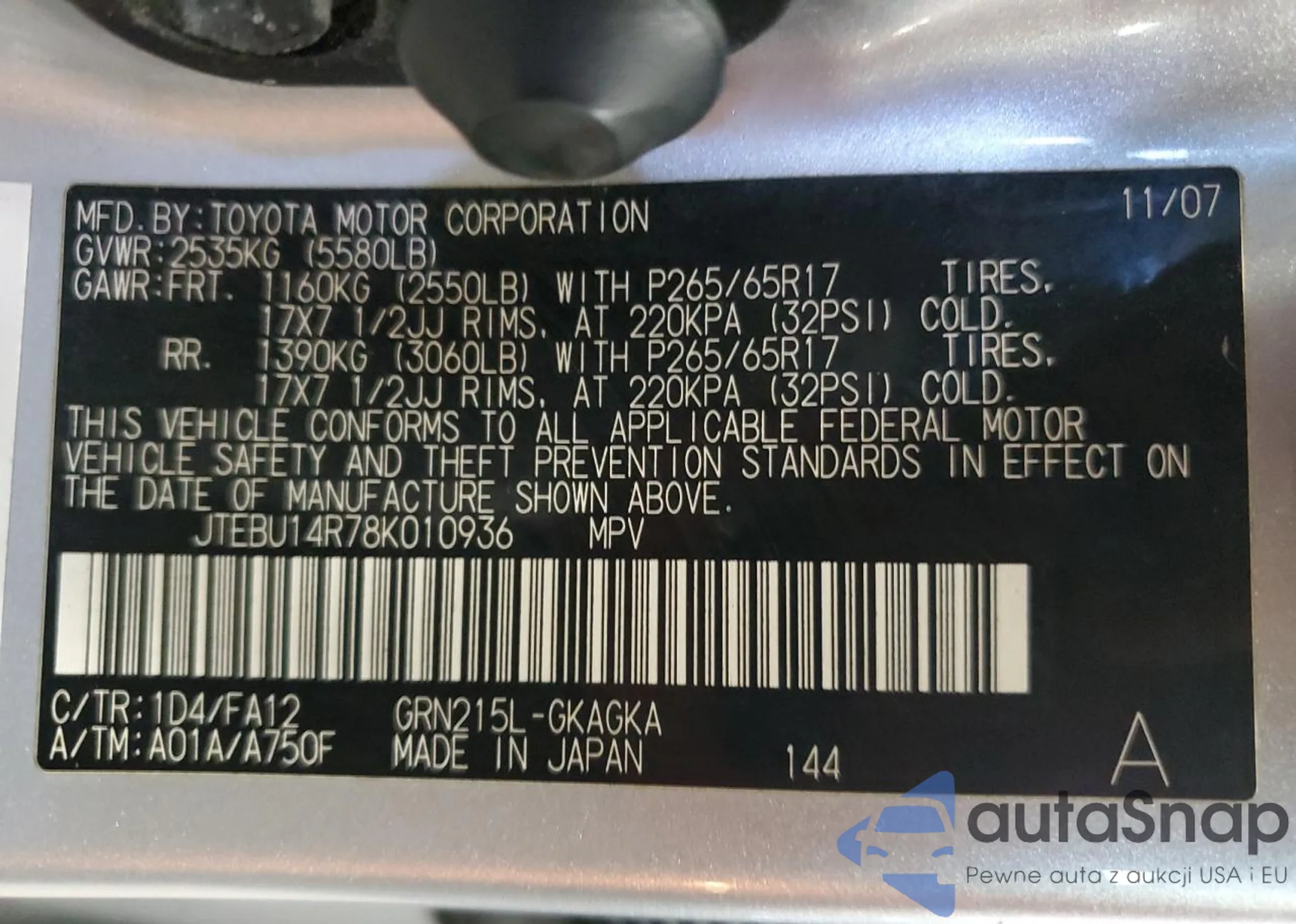 VIN: JTEBU14R78K010936
