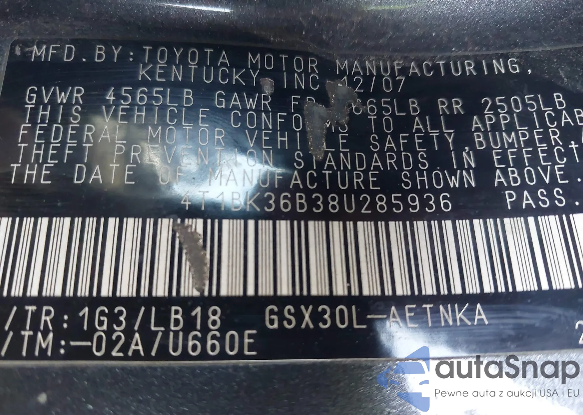 VIN: 4T1BK36B38U285936
