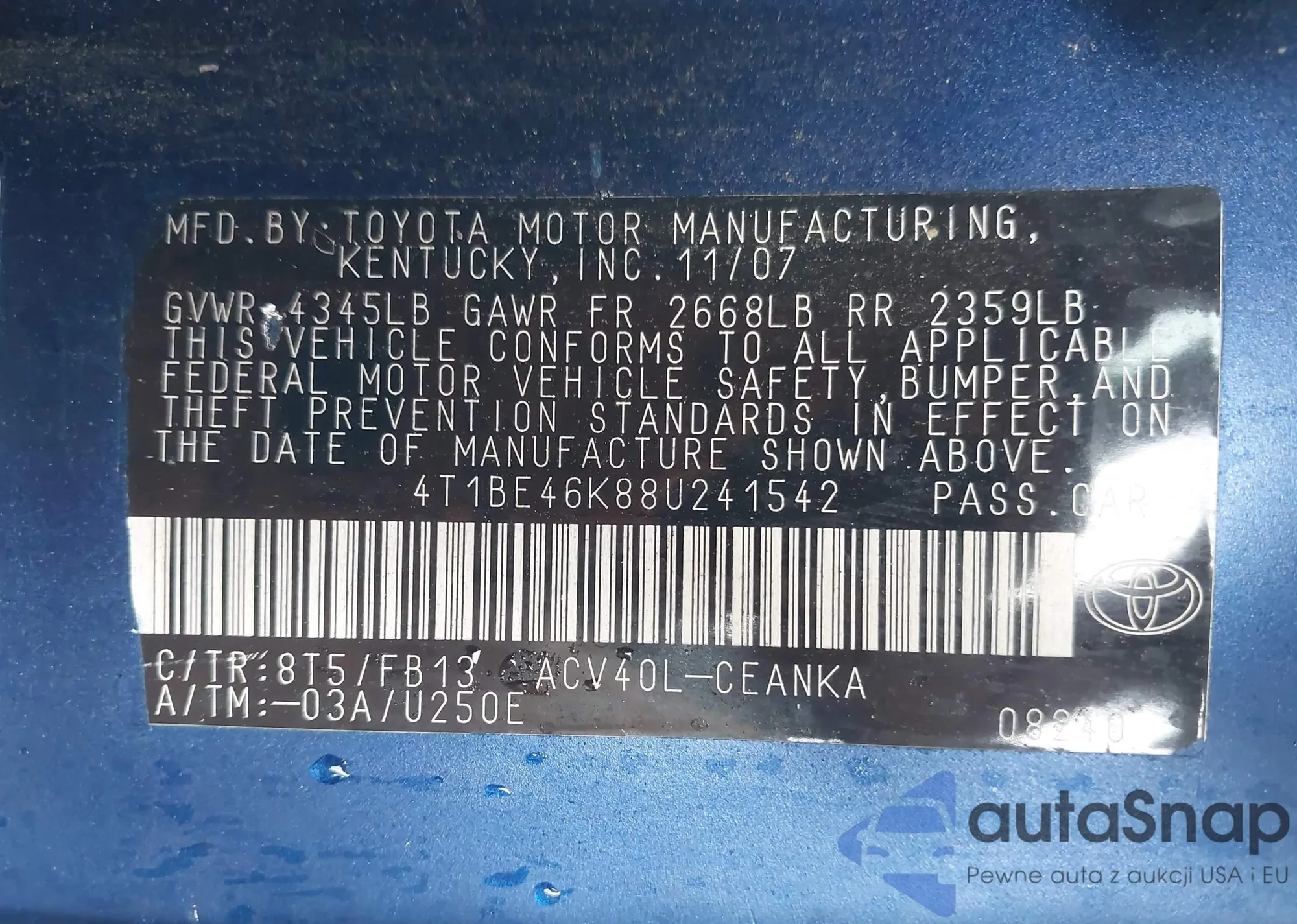 VIN: 4T1BE46K88U241542