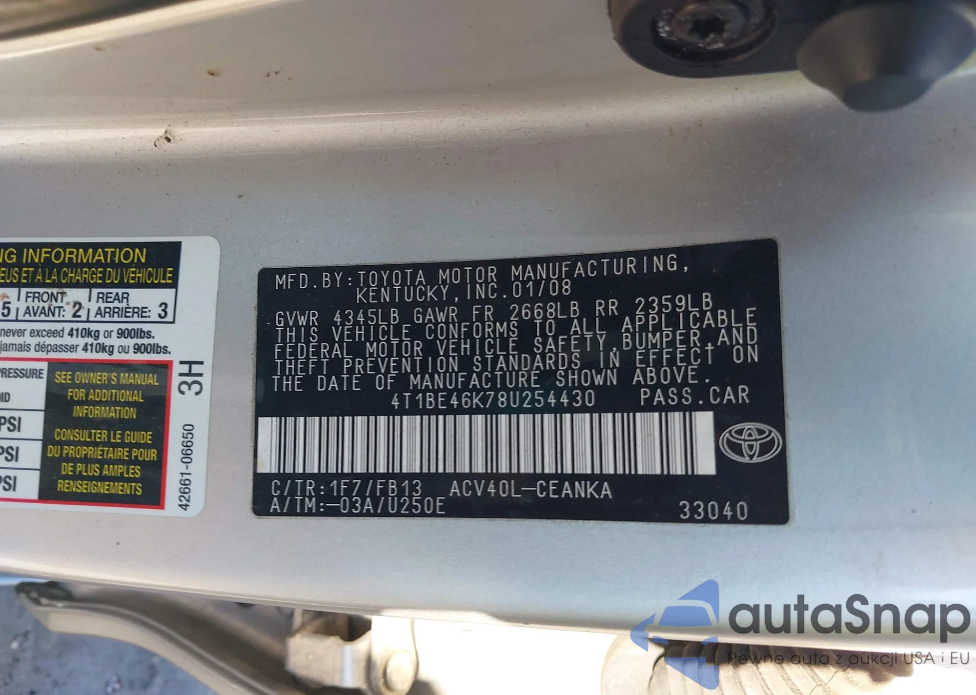 VIN: 4T1BE46K78U254430