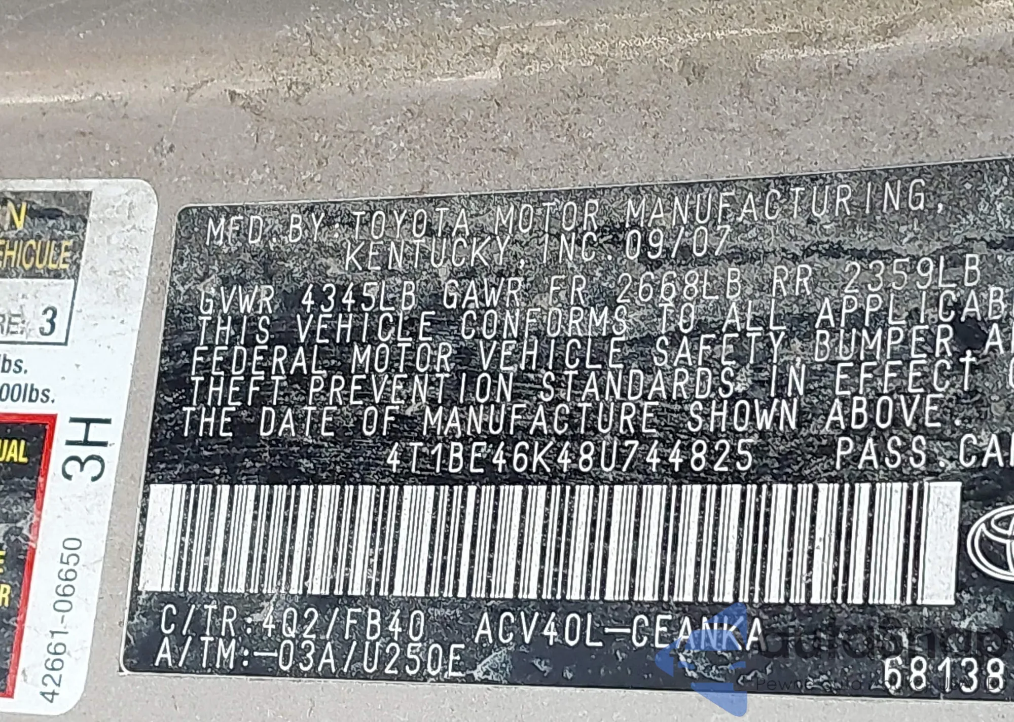 VIN: 4T1BE46K48U744825