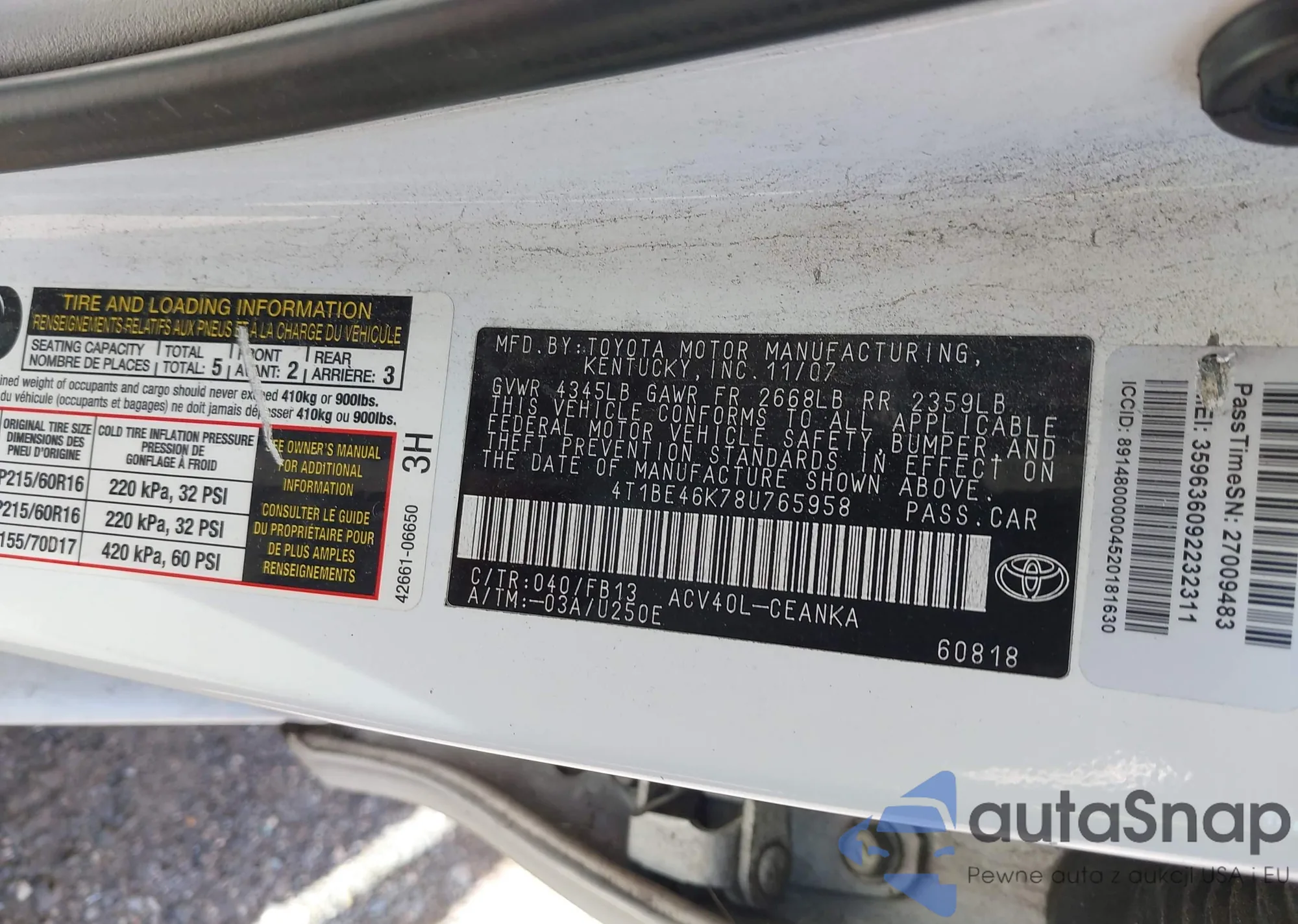VIN: 4T1BE46K78U765958