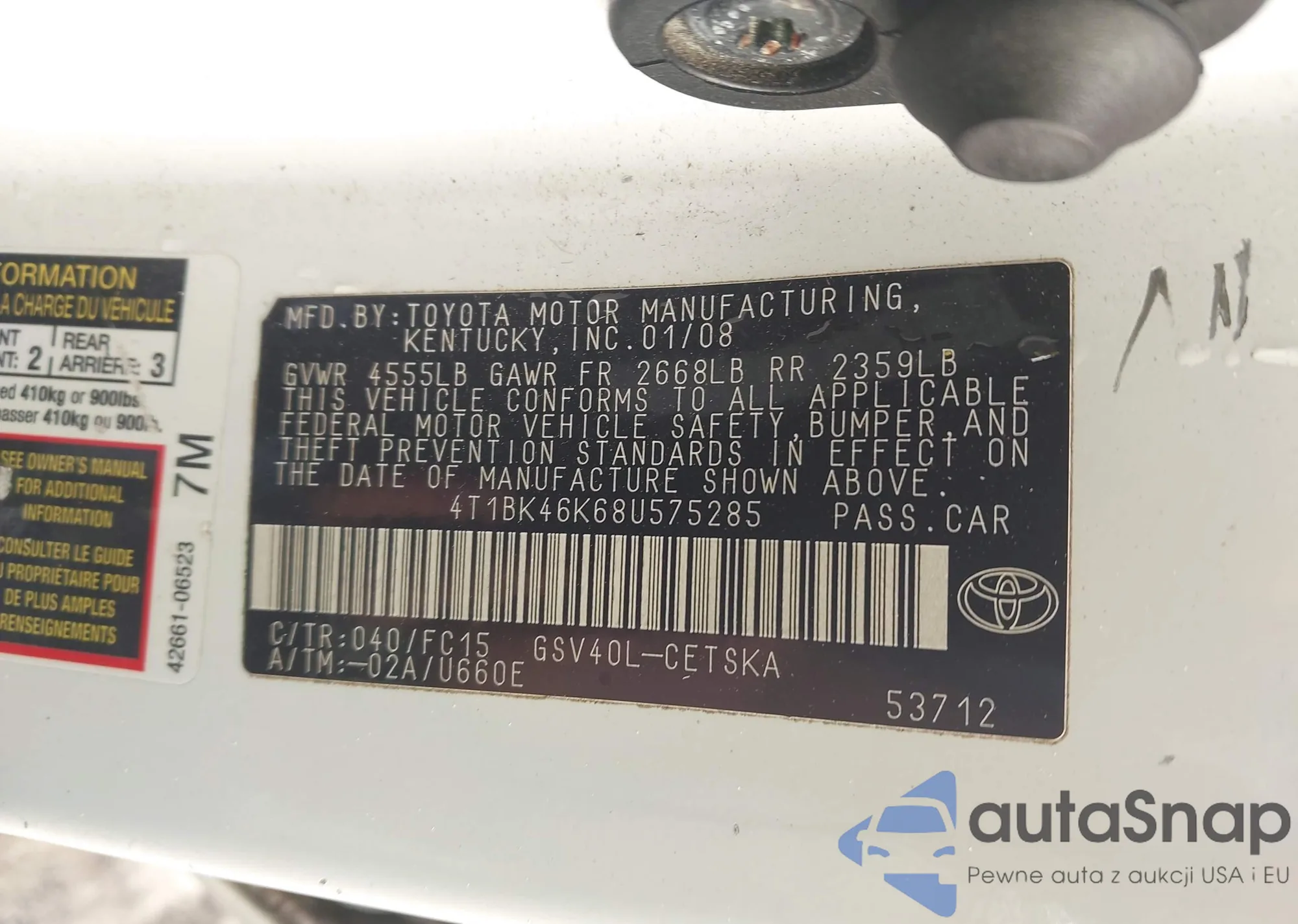 VIN: 4T1BK46K68U575285