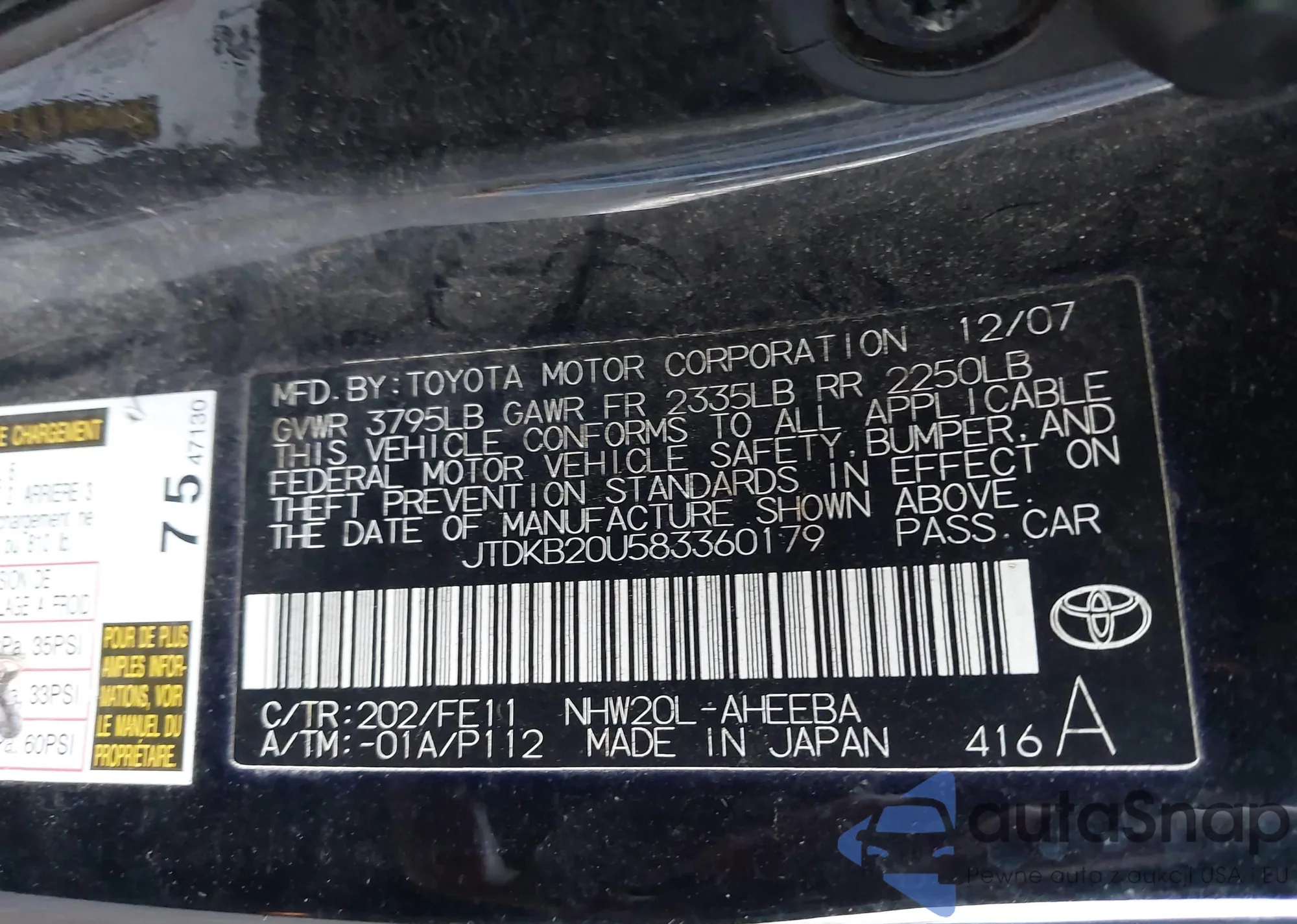 VIN: JTDKB20U583360179