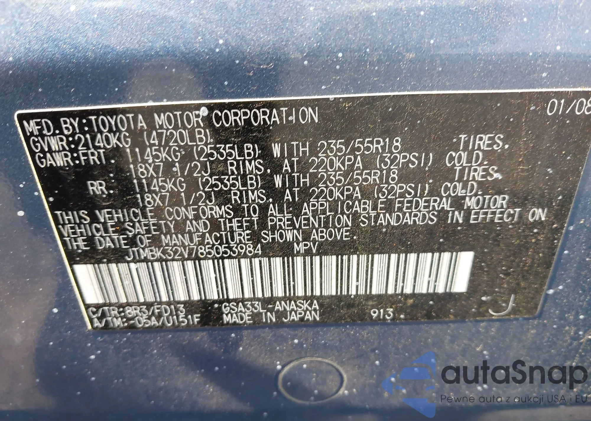 VIN: JTMBK32V785053984