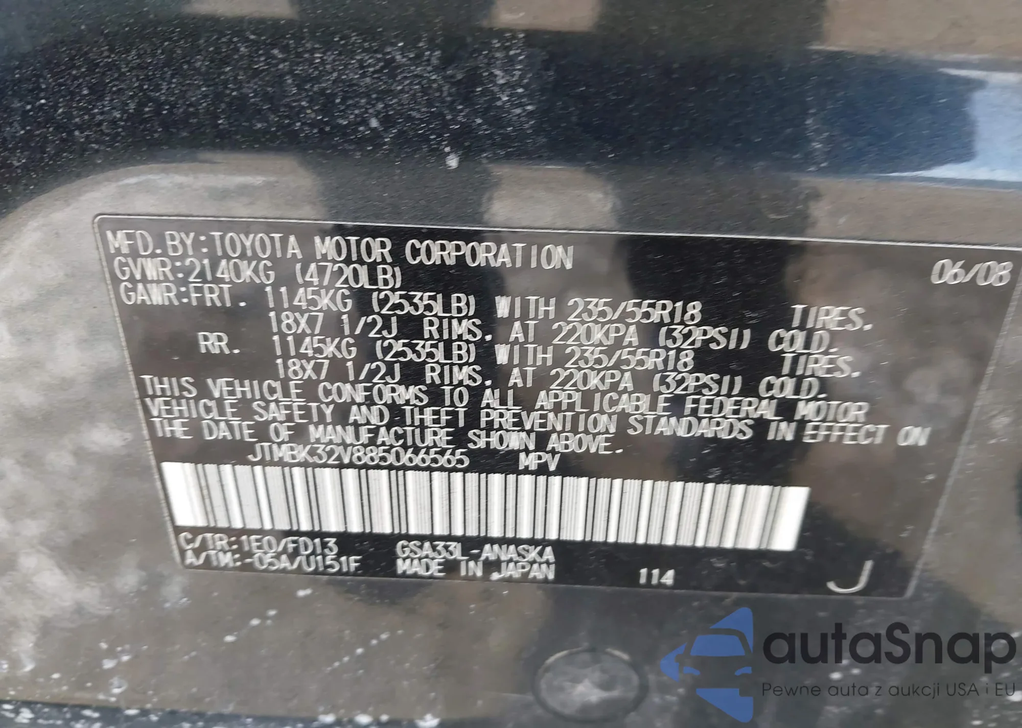 VIN: JTMBK32V885066565