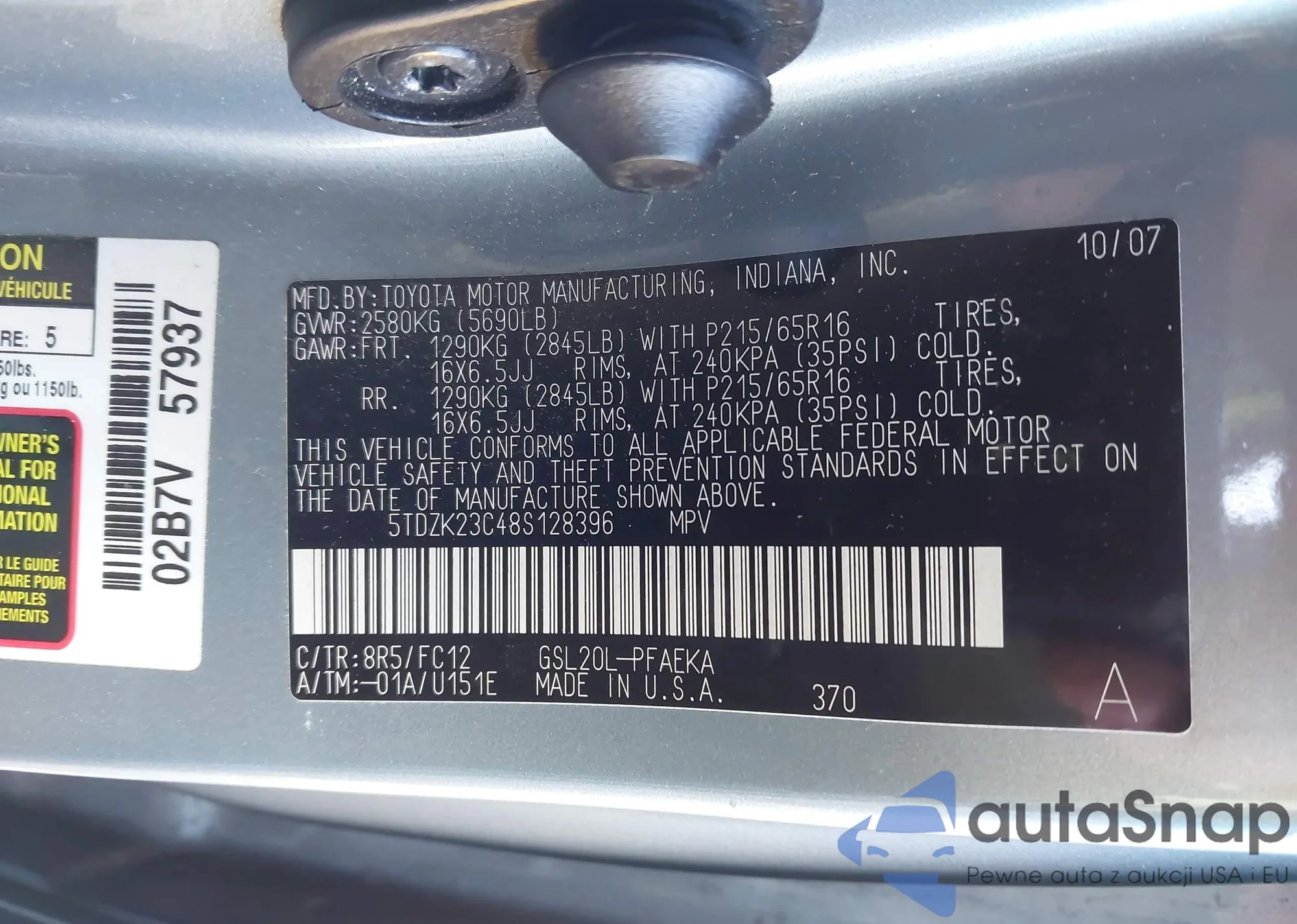 VIN: 5TDZK23C48S128396