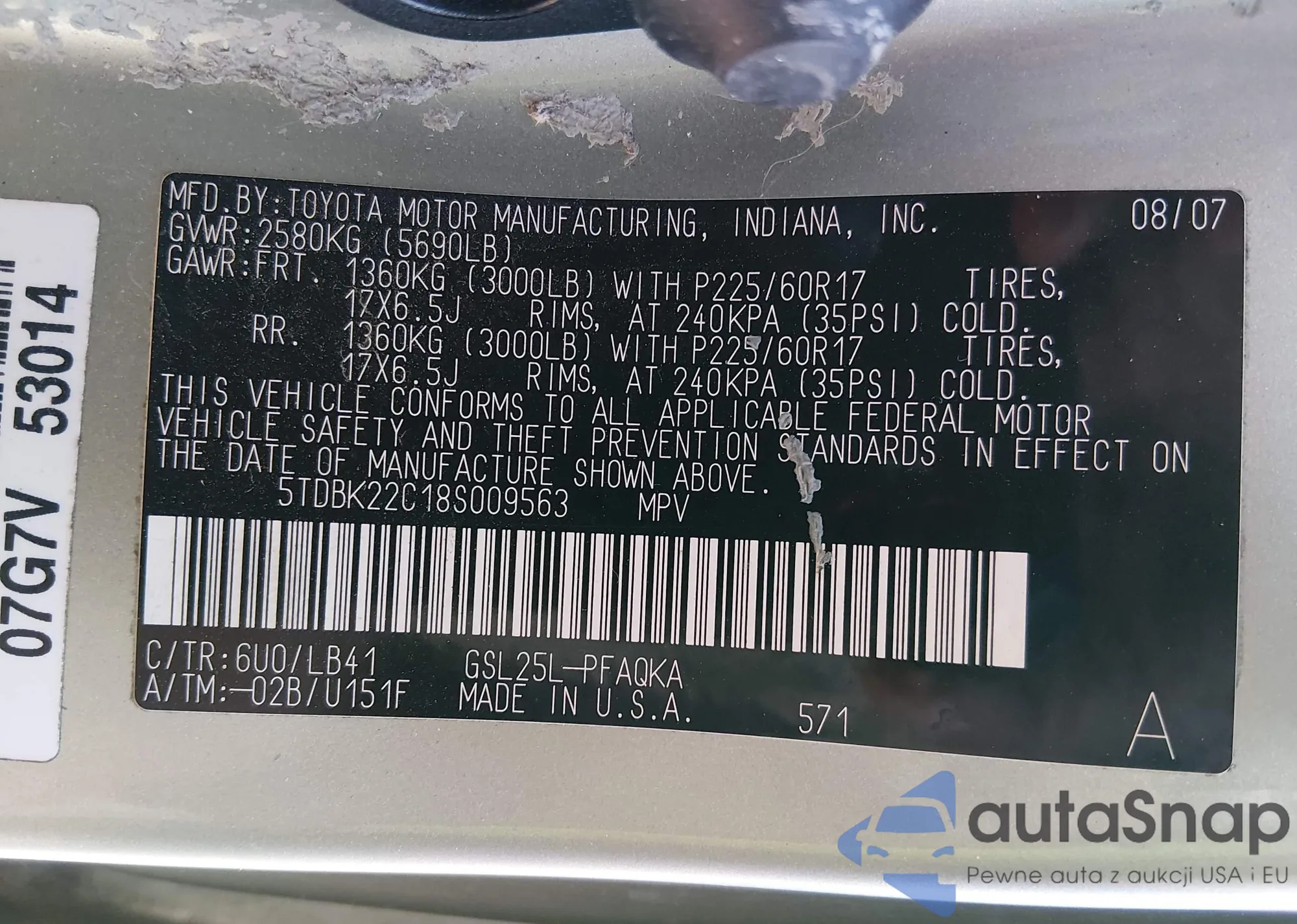 Samochód Toyota Sienna 2008 (VIN 5TDBK22C18S009563) sprzedaje go niezweryfikowany sprzedawca. Zalecamy raport Carfax i potwierdzenie możliwości rejestracji pojazdu przed zakupem.
