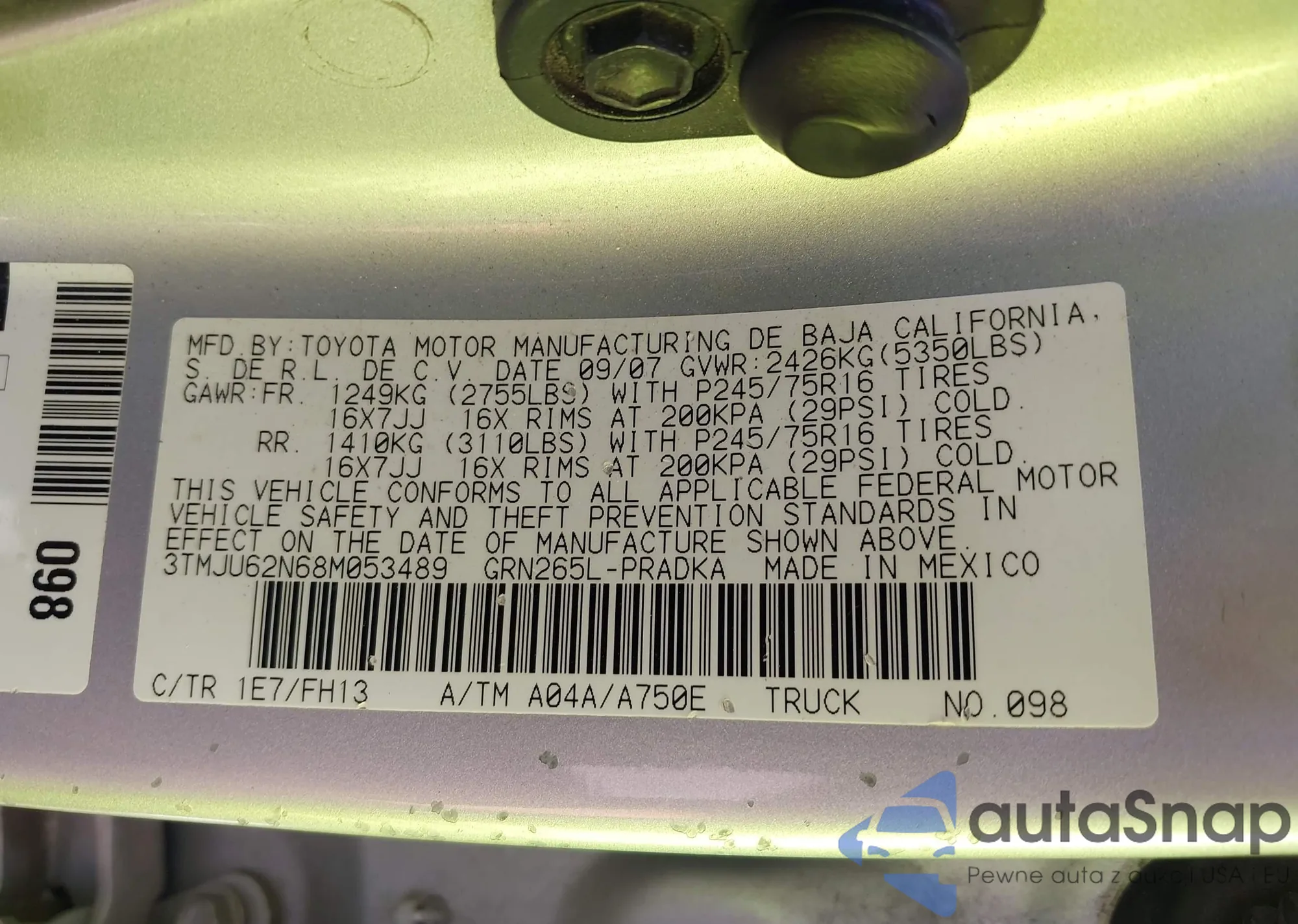 VIN: 3TMJU62N68M053489