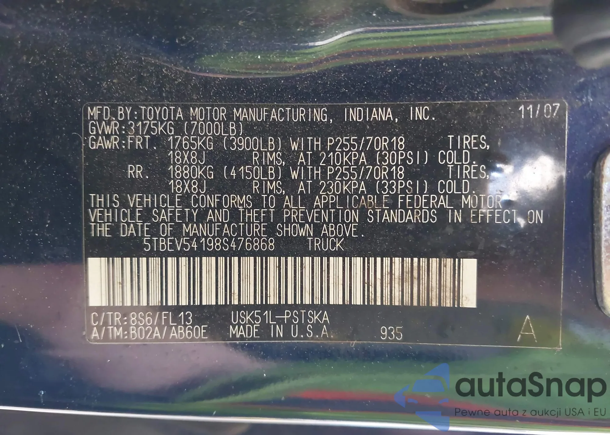 VIN: 5TBEV54198S476868