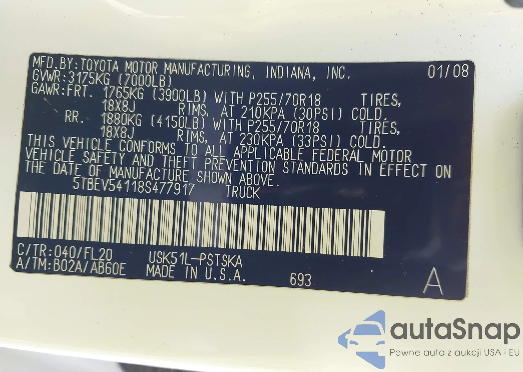 VIN: 5TBEV54118S477917