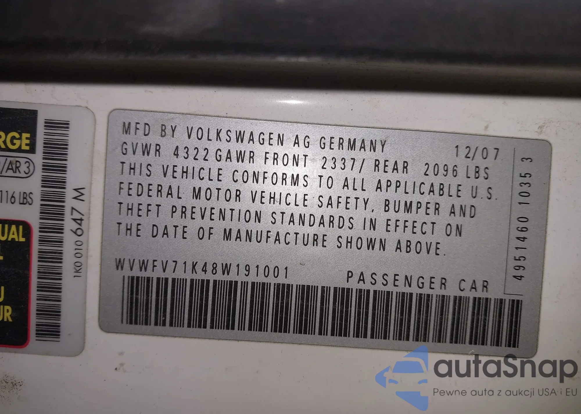 VIN: WVWFV71K48W191001