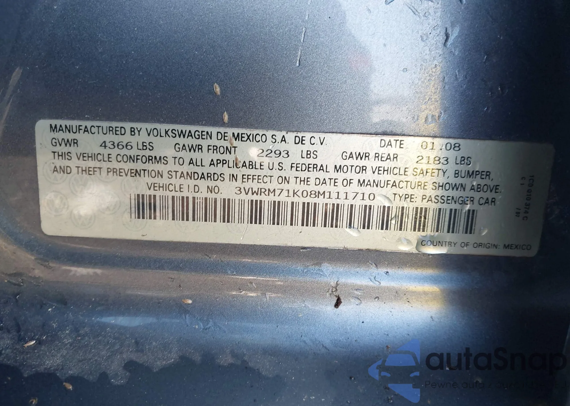 VIN: 3VWRM71K08M111710