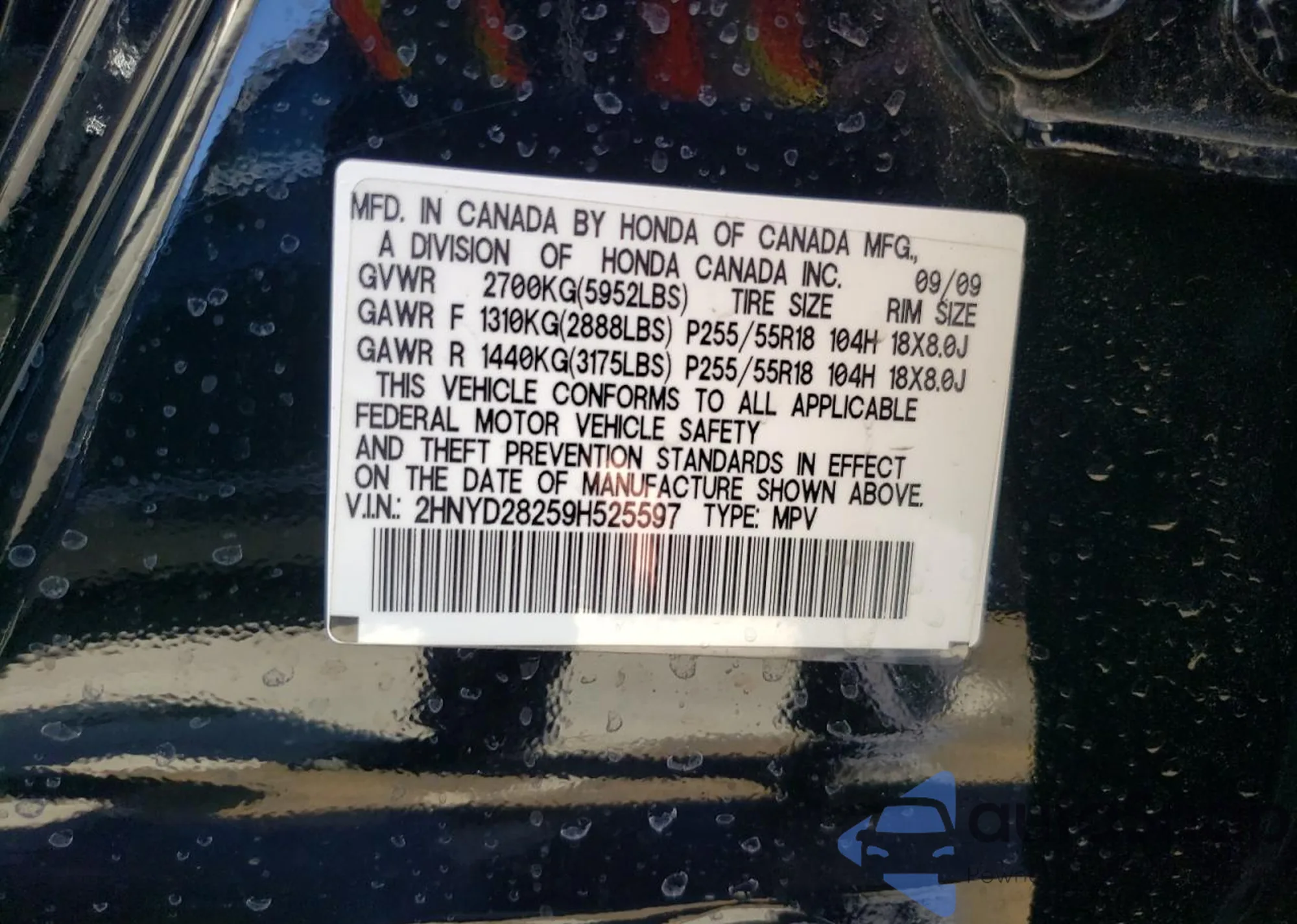 • VIN: 2HNYD28259H525597