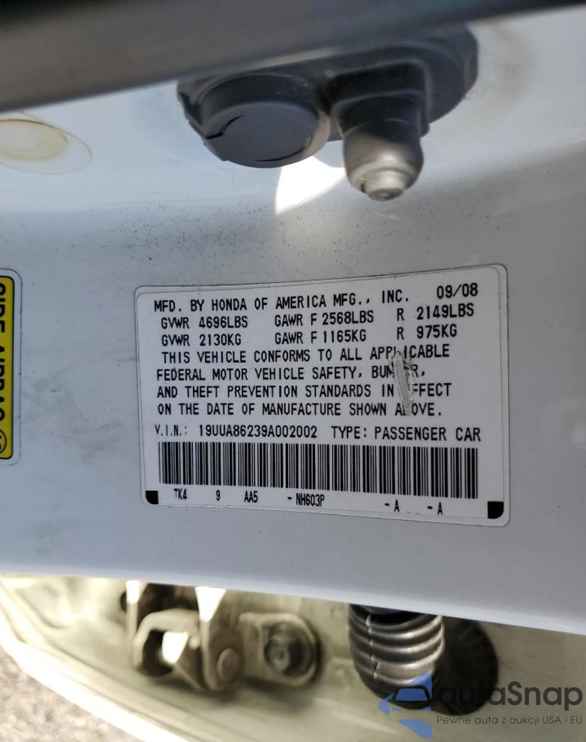 VIN: 19UUA86239A002002