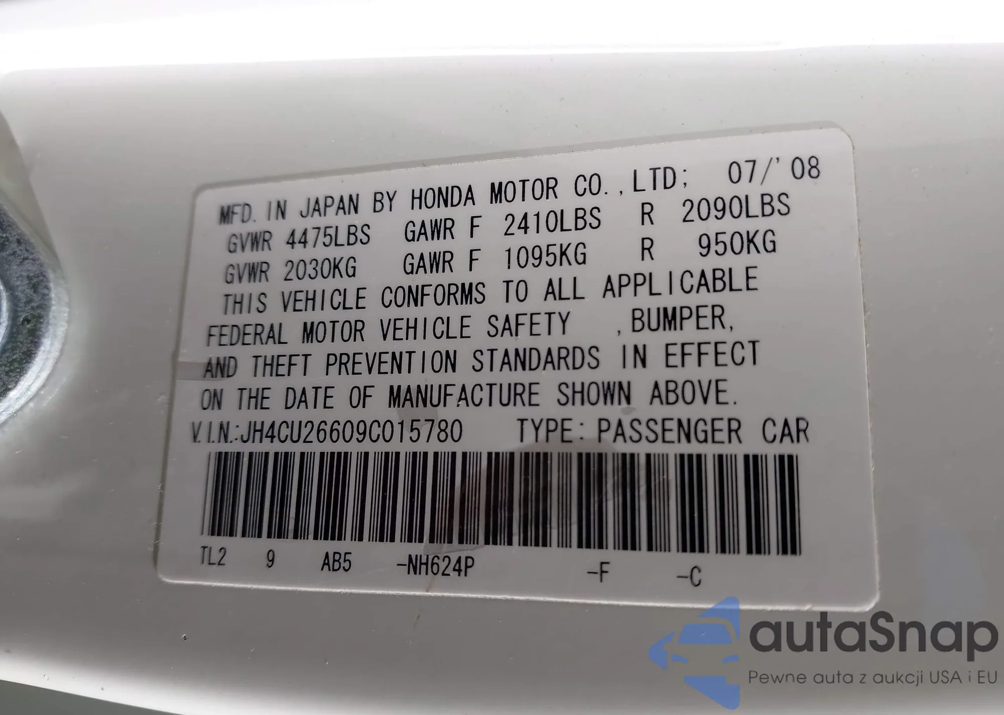Samochód Acura TSX 2009 (VIN JH4CU26609C015780) nie był wcześniej licytowany. Dokumenty są czyste, przebieg odpowiada lub jest niższy niż średnia rynku. Sprzedaje go firma ubezpieczeniowa – polecamy zakup. Dostawa do portu zajmie ok. 6–8 tygodni.